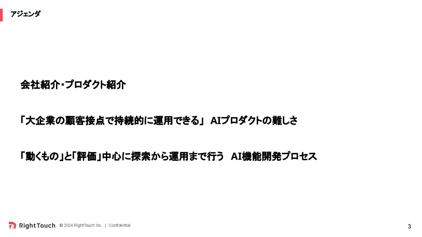 © 2024 RightTouch Inc. | Confidential アジェンダ 3 会社紹介・プロダクト紹介