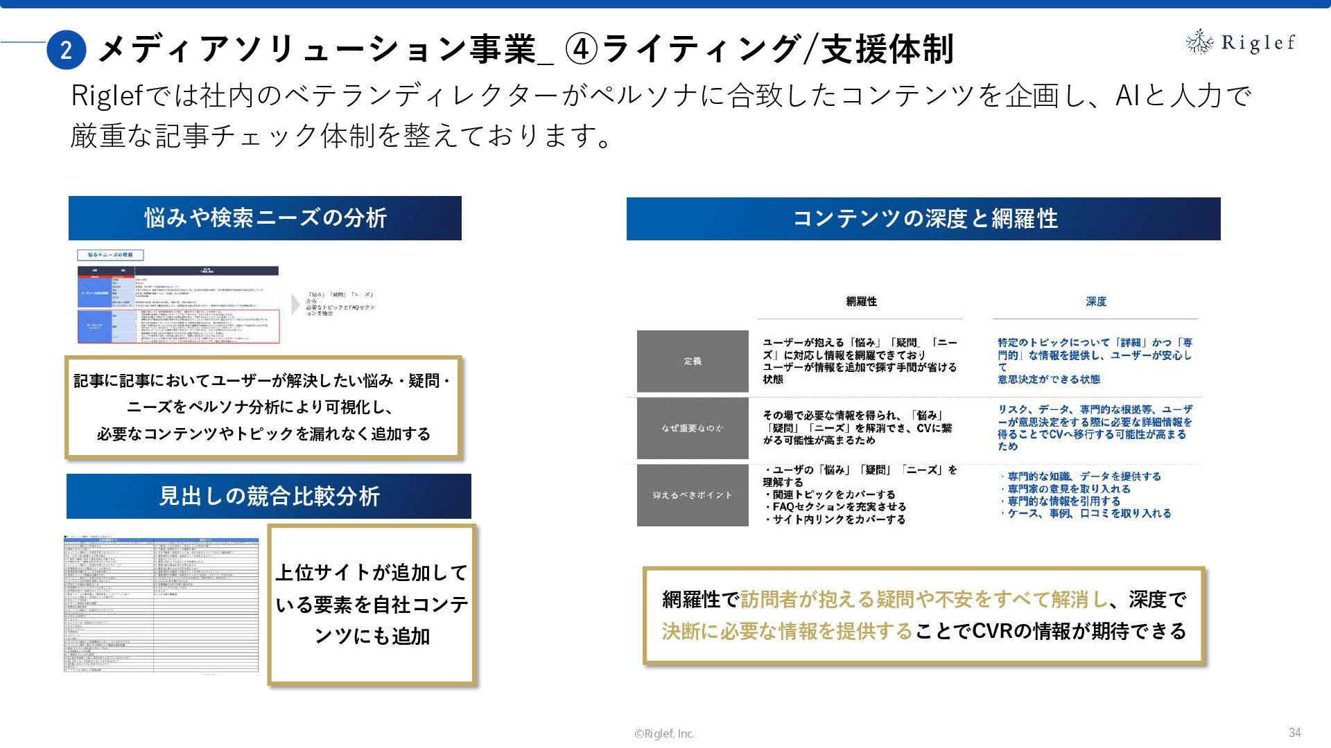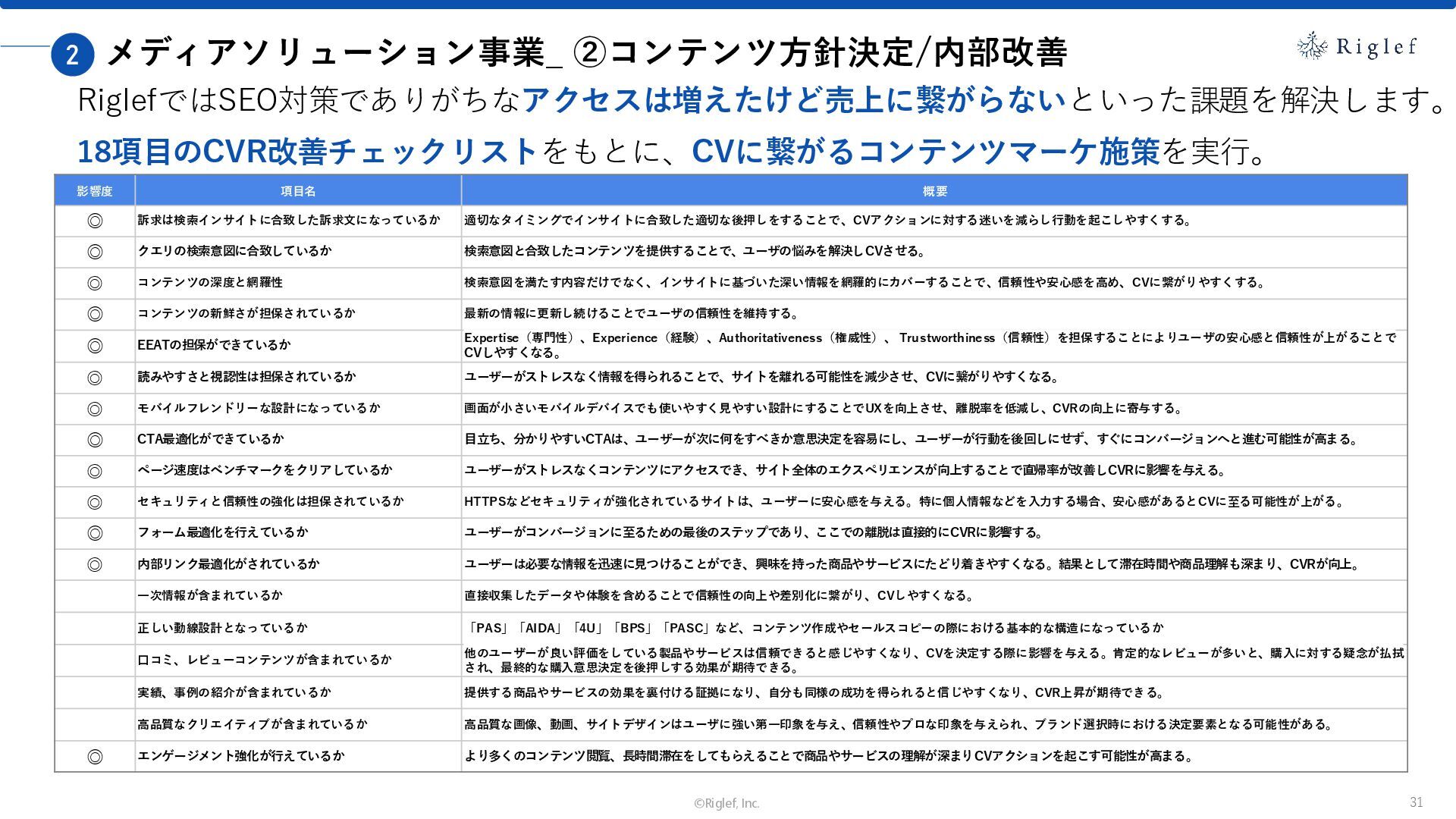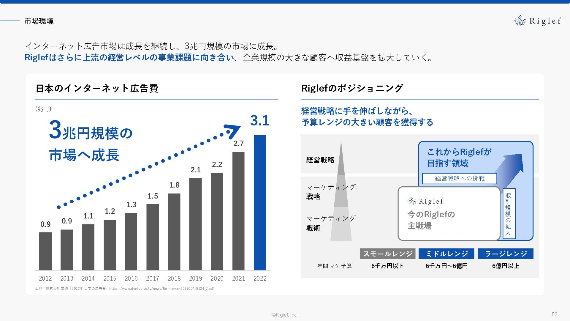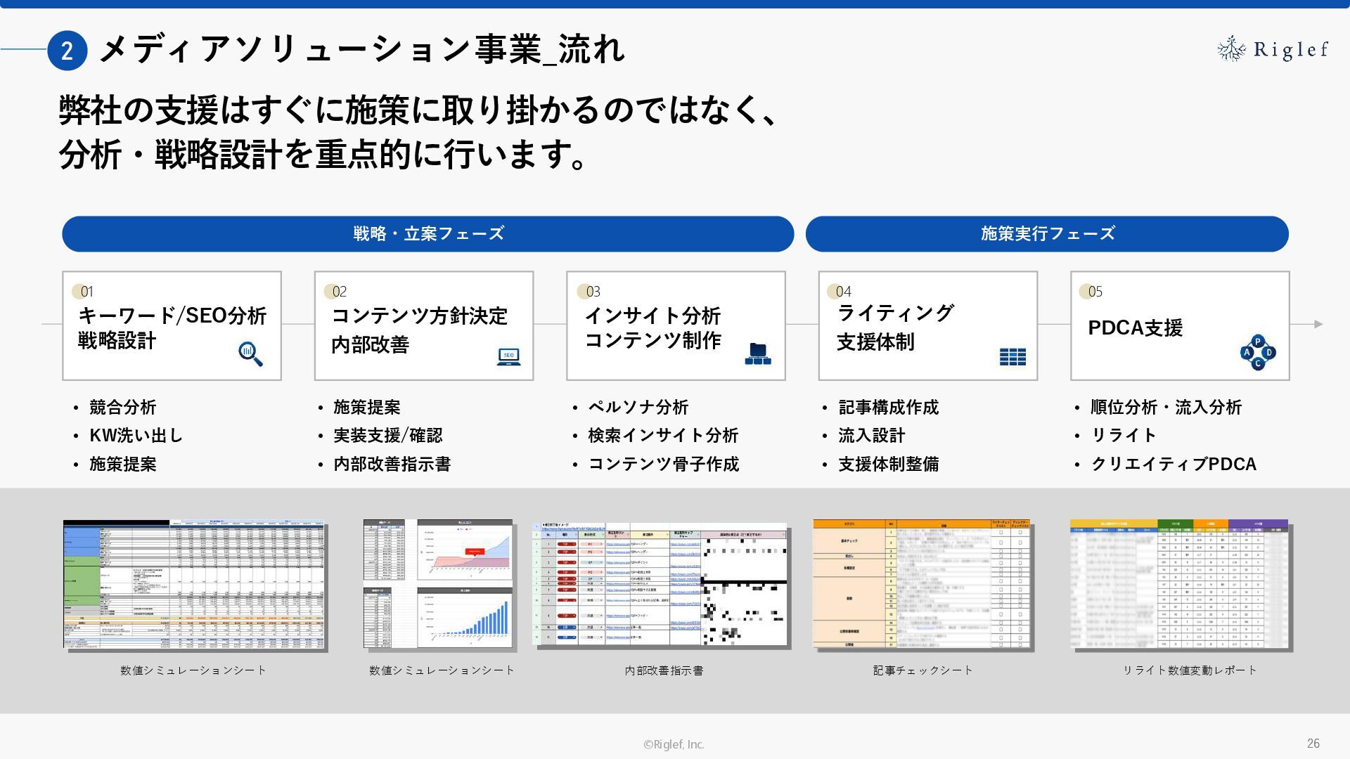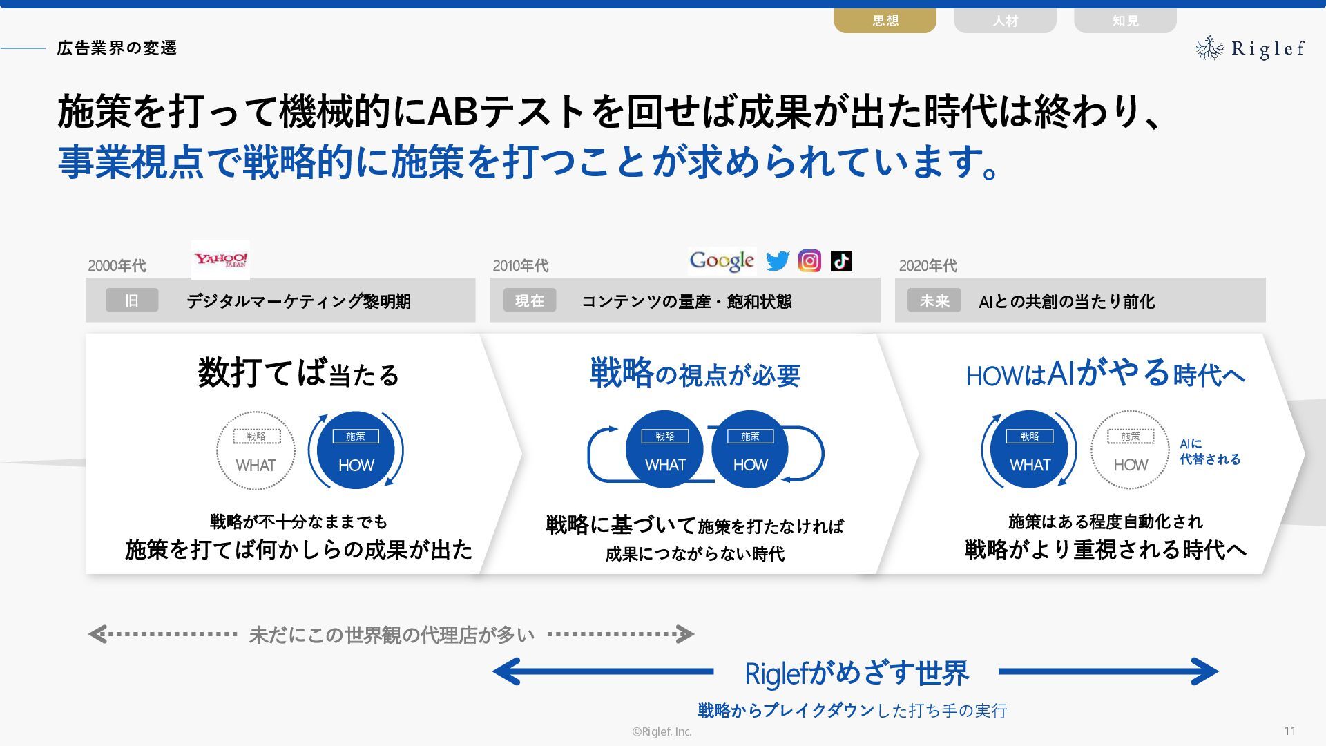 果 背景 課題解決の ポイント 業種 サービス 金融 M&A仲介 Webマーケティングを担当できる人材がいなかった。 結果、クライアントにとって以下が喫緊の課題であった。 1. 獲得単価が平均よりも高額であること 2. 問い合わせ数がKPIに対して少ないこと ユーザーのインサイト分析に 注力した設計へ 予算 1,400万円 施策 CPA(1ヶ月半) 40,000円 50%改善 20,000円 CPA(半年間後) 20,000円 90%改善 4,300円 広告予算 550万円 850万UP 1,400万円 CPA改善 90%達成 ¥20,000 ¥4,300 ¥0 ¥20,000 ¥40,000 元々 1ヶ月 6ヶ月 期間 CPA 50%改善 90%改善 CPA価格改善の推移 使用した広告種類 1. サービスの対象となるユーザー像を深掘りし、面談のキャンセルが 頻発する原因等を分析。 2. 仮説をもとに構成を組み直したうえで、インサイトに刺さるようLP を設計。