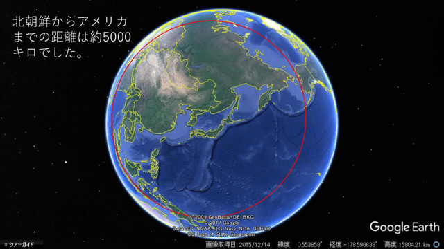 北朝鮮からアメリカ までの距離は約5000 キロでした。