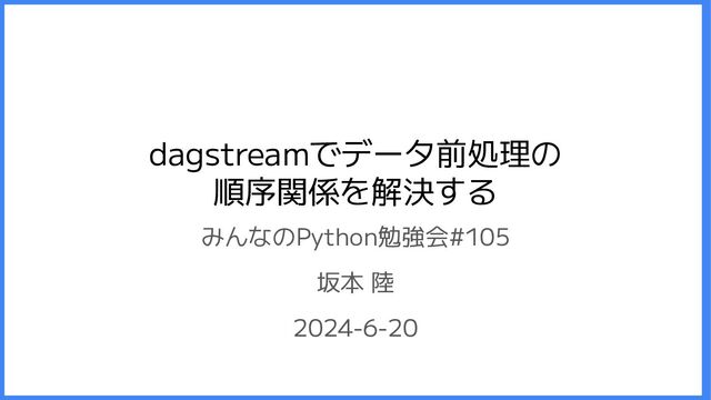 dagstreamでデータ前処理の 順序関係を解決する みんなのPython勉強会#105 坂本 陸 2024-6-20