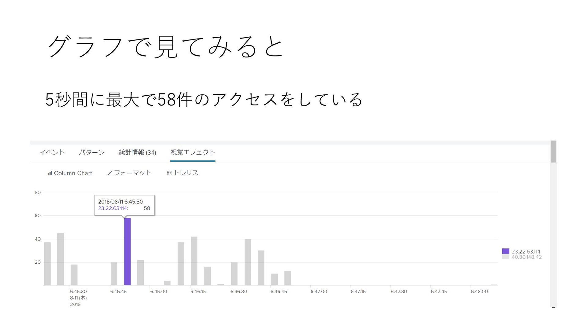 一番多いところで5秒間の間に58回もアクセス試行をしていることがわかります。
