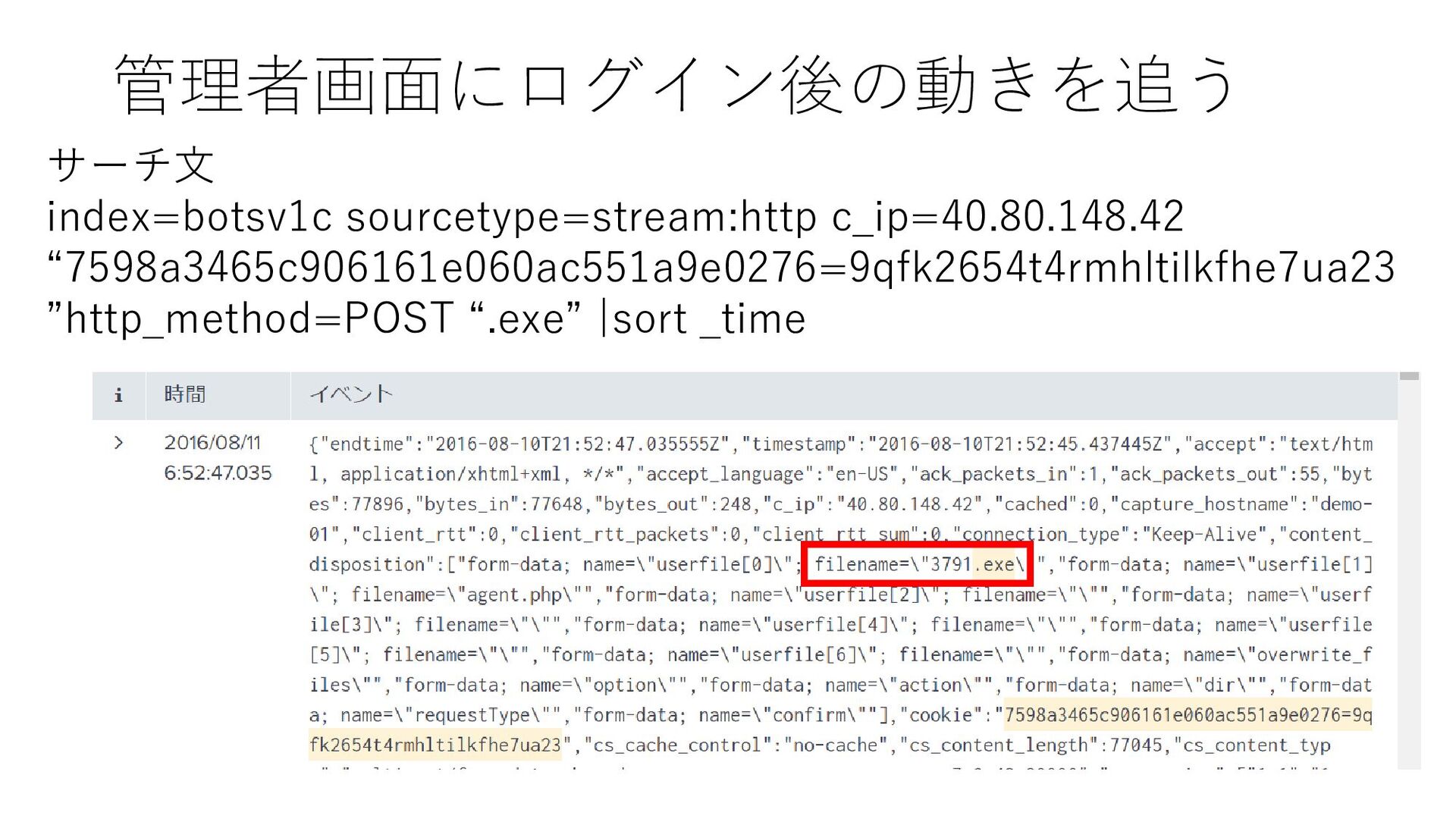 16. 管理者画面へのログインを成功させた攻撃者のその後の動きについて調査を進めていくと