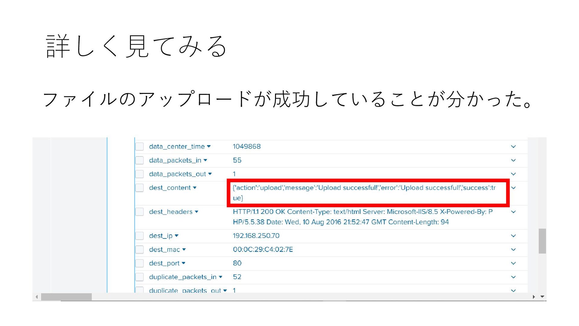 この不審なファイルのアップロードが成功していそうなことがわかりました。