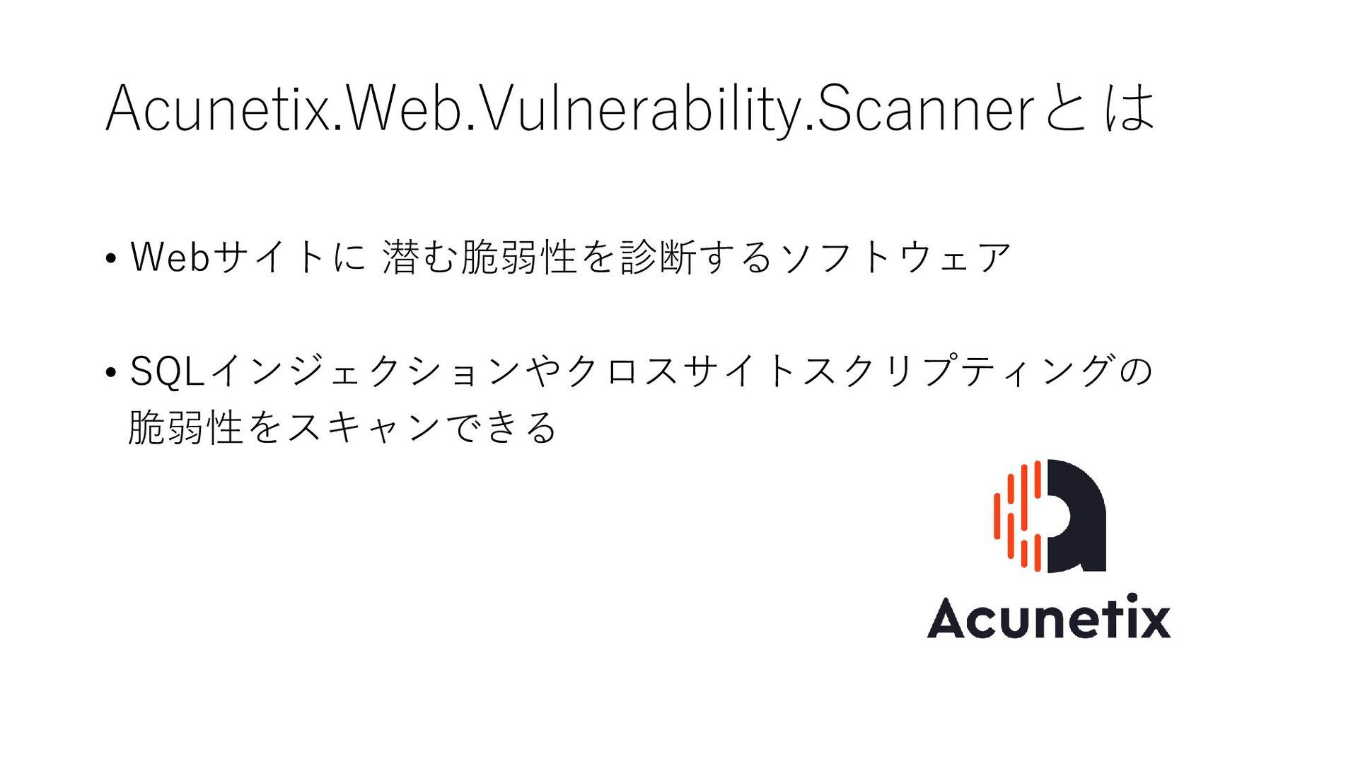 WebサイトのSQLインジェクションやクロスサイトスクリプティングの脆弱性がスキャンできる、脆弱性スキャンツールであることがわかりました。