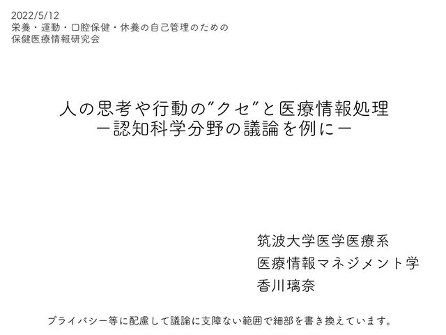 ਓͷࢥߟߦಈͷzΫηzͱҩྍใॲཧ ʔೝՊֶͷٞΛྫʹʔ ஜେֶҩֶҩྍܥ ҩྍใϚωδϝϯτֶ ߳ཨಸ ϓϥΠόγʔʹྀͯٞ͠ʹࢧোͳ͍ൣғͰࡉ෦Λॻ͖͍͑ͯ·͢ɻ ӫཆɾӡಈɾޱߢอ݈ɾٳཆͷࣗݾཧͷͨΊͷ อ݈ҩྍใݚڀձ