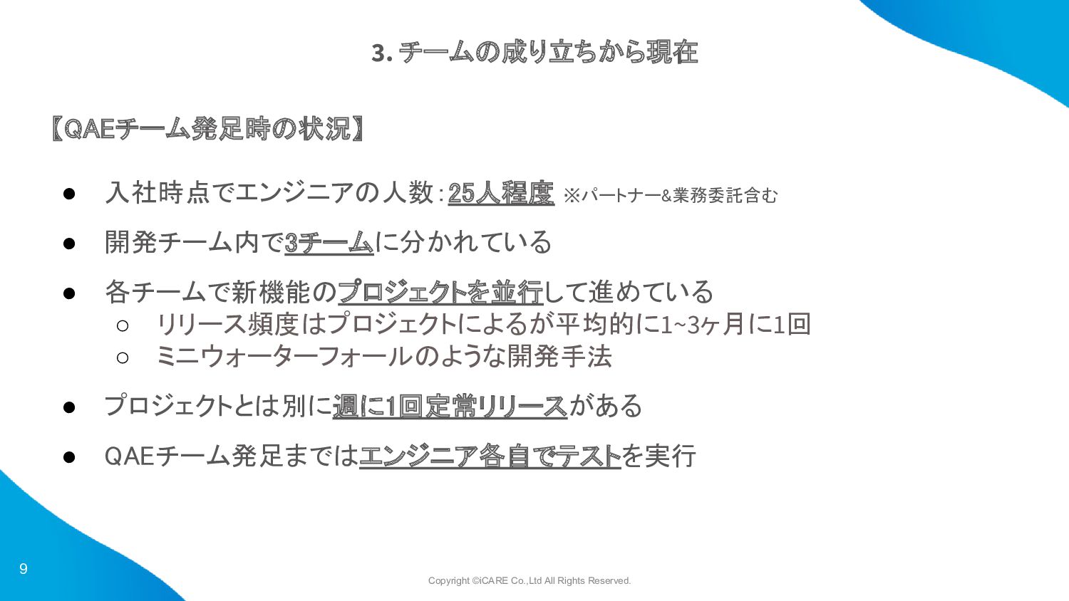 iCAREのQAEチームの成り立ちから取り組みについてお話ししました。