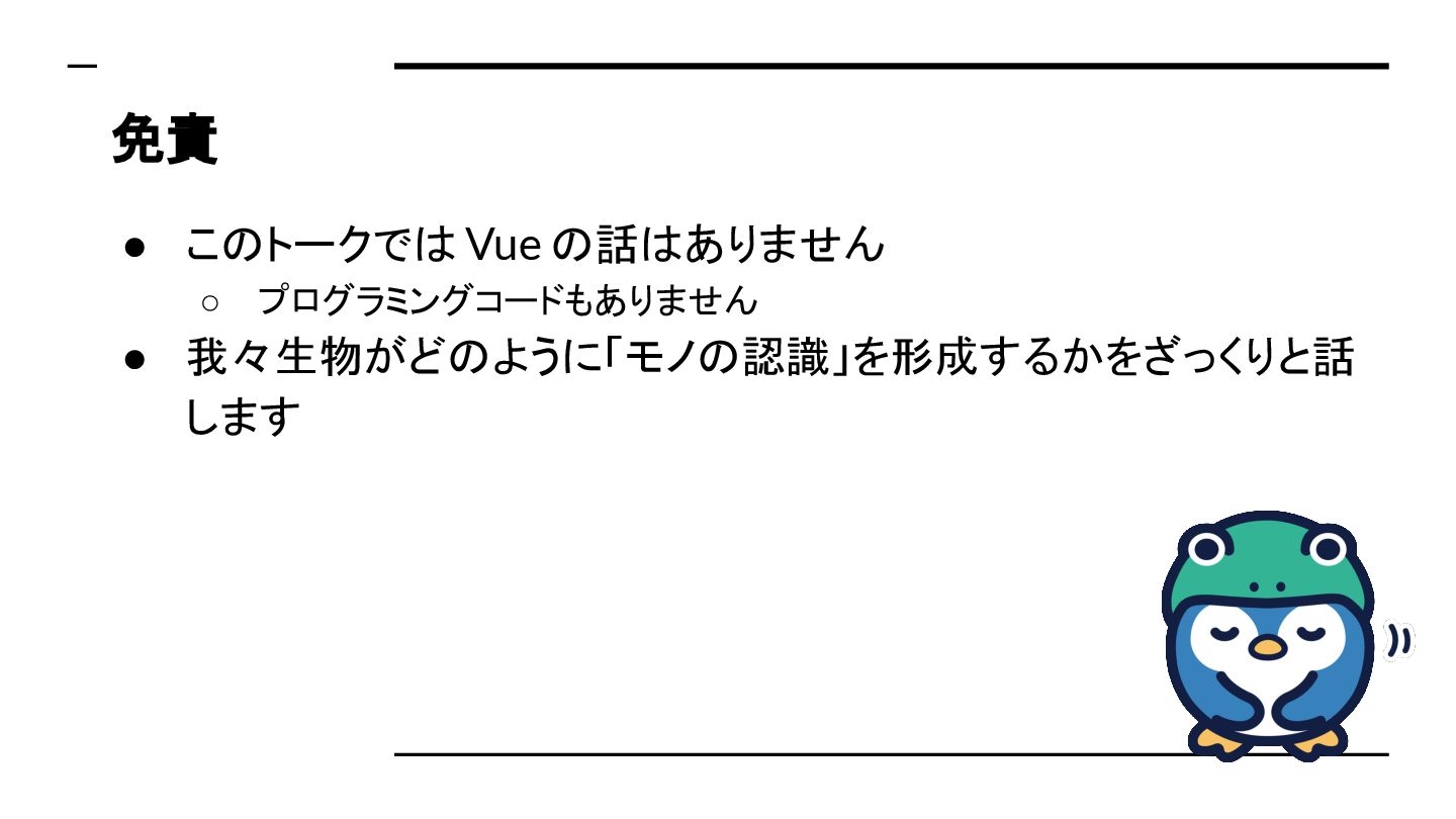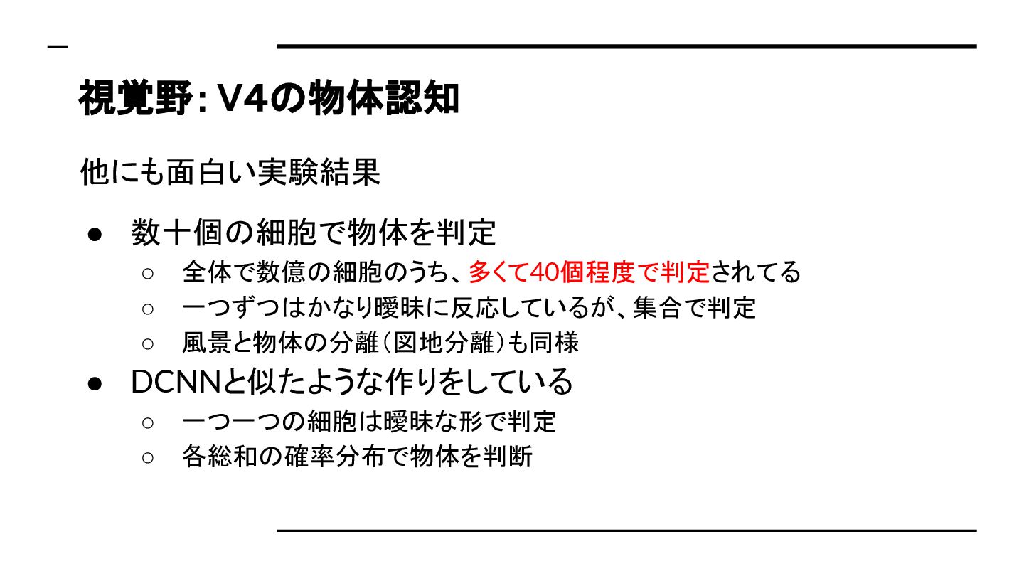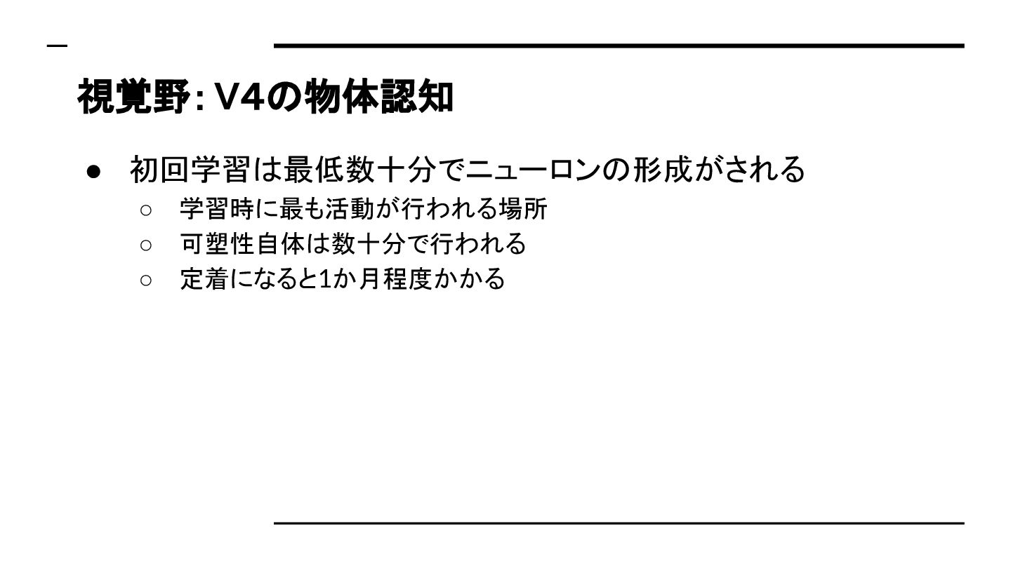 2. まとめ • 「視る」とは、様々な特徴の寄せ集めで判断 ◦ 輪郭、傾き、方向、色、サイズ、パターンなど ◦ 明確な形ではなく、曖昧な形での判断 • 「体験」の繰り返しで、新しい経験も障壁が小さくなる ◦