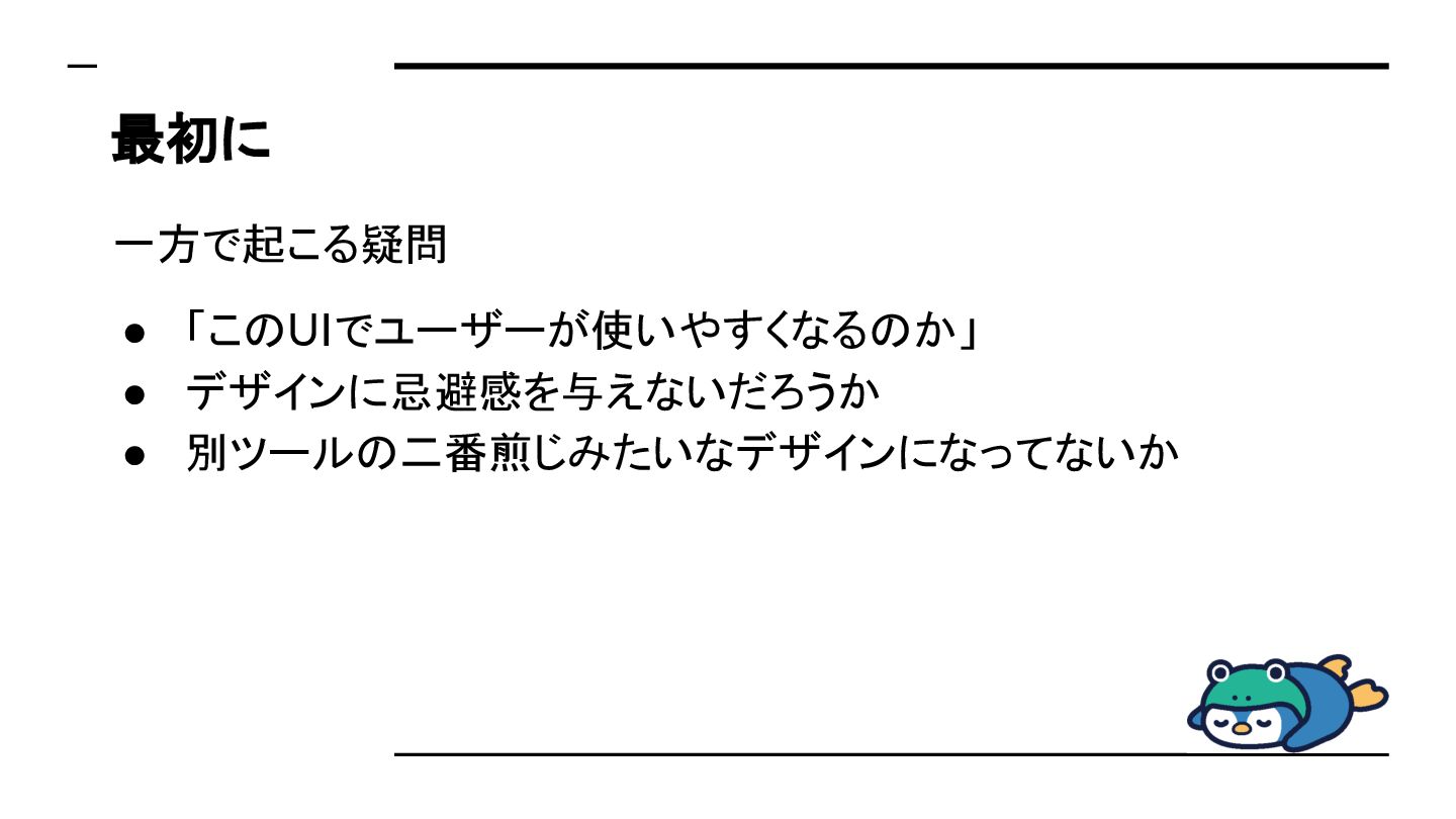 一回の体験が基本なら、他と似ていると離脱も少ない ◦ 複数回の体験があるなら、少し他と区別しても後に慣れる ◦ 形成後は長期に残りやすい ◦ ある程度似ていれば、勝手に脳が同じとも判断する • 今後AIによるペルソナに対応したUX確認ができる未来もあるか も