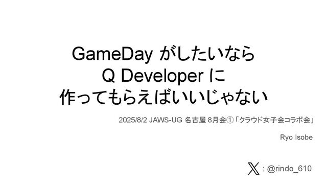 GameDay がしたいなら Q Developer に 作ってもらえばいいじゃない 2025/8/2 JAWS-UG 名古屋 8月会①