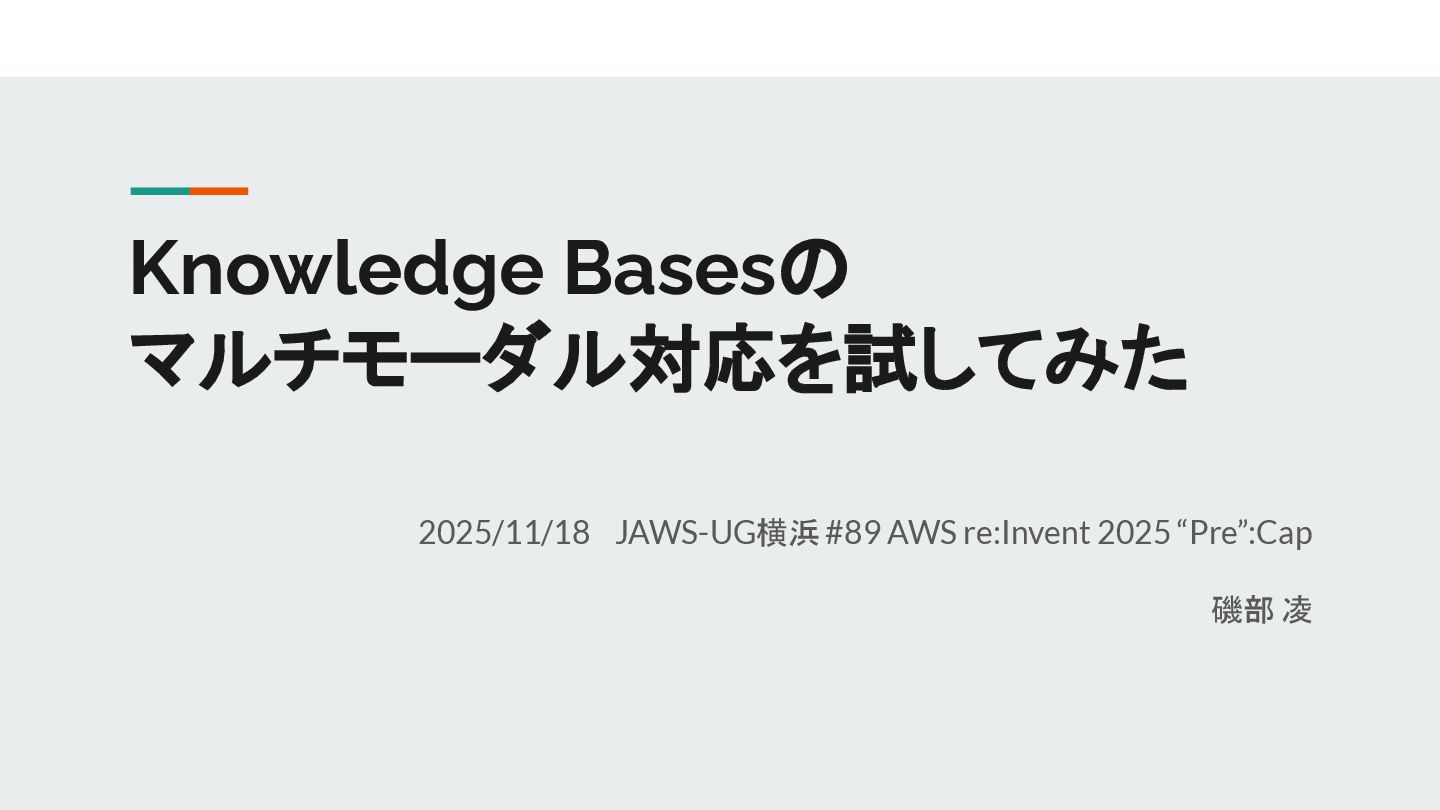 Knowledge Basesの マルチモーダル対応を試してみた 2025/11/18 JAWS-UG横浜 #89 AWS re:Invent 2025 “Pre”:Cap