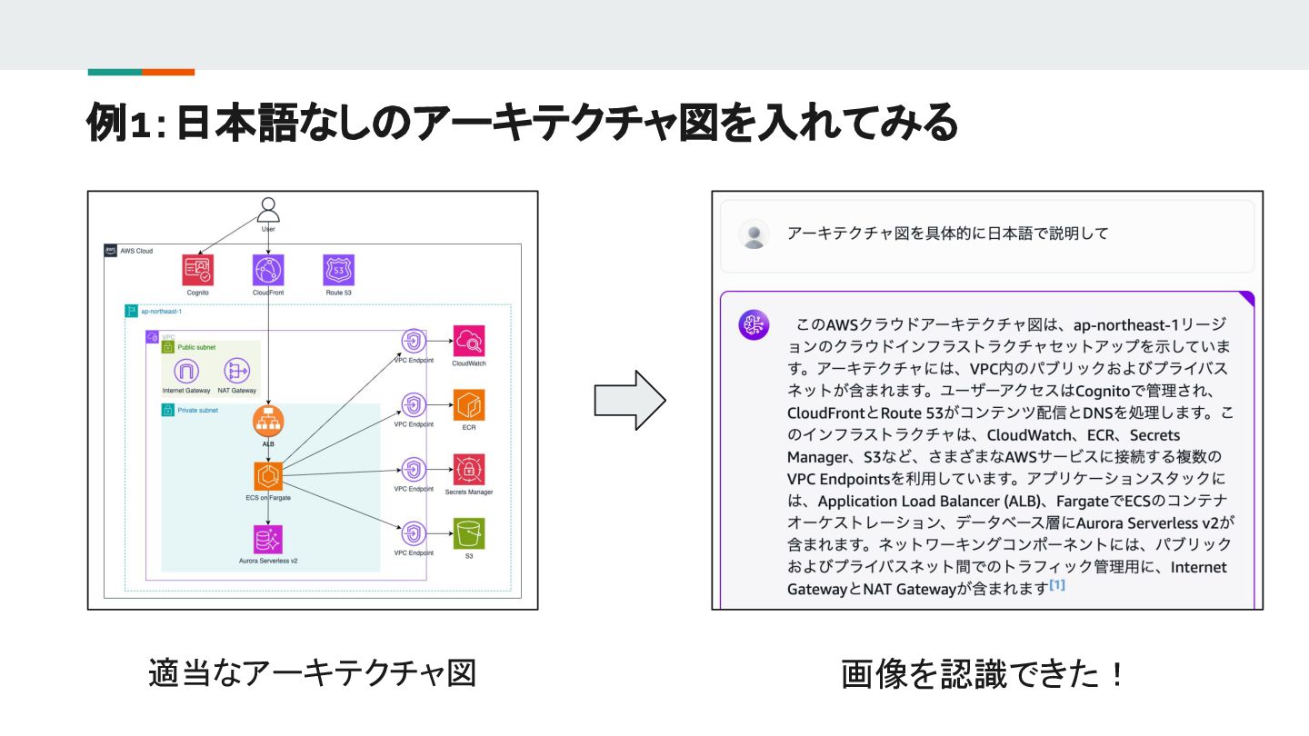 例1:日本語なしのアーキテクチャ図を入れてみる 適当なアーキテクチャ図 画像を認識できた!