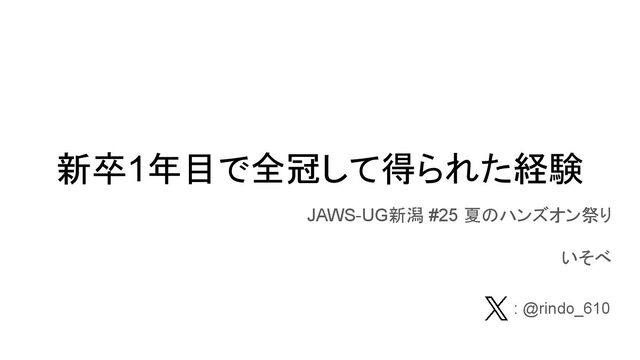 新卒1年目で全冠して得られた経験 JAWS-UG新潟 #25 夏のハンズオン祭り いそべ : @rindo_610