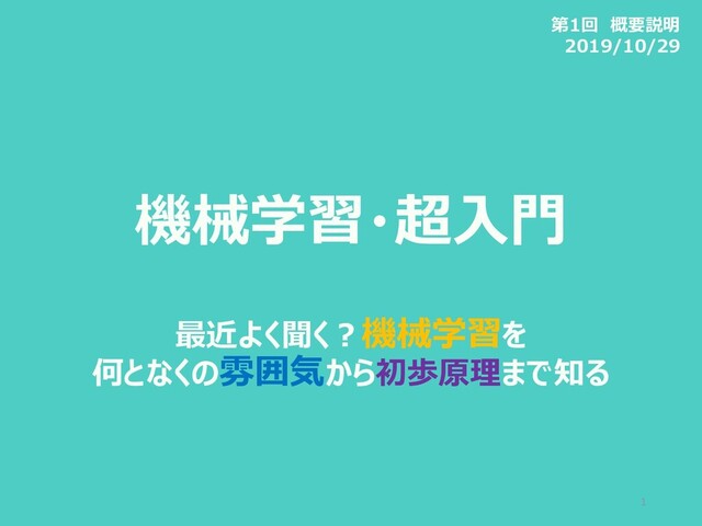 機械学習・超入門 最近よく聞く?機械学習を 何となくの雰囲気から初歩原理まで知る 70 第4回 一番簡単な例で理解する機械学習 2019/10/29