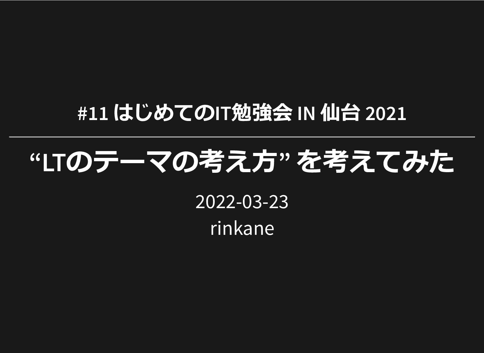 #11 はじめてのIT勉強会 IN 仙台 2021 “LTのテーマの考え方” を考えてみた 2022-03-23 rinkane