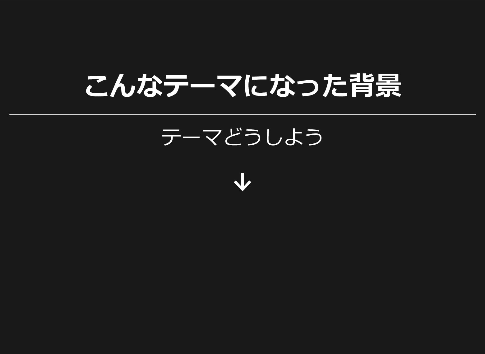 こんなテーマになった背景 テーマどうしよう ↓ そうだ!これ自体をテーマにしちゃおう