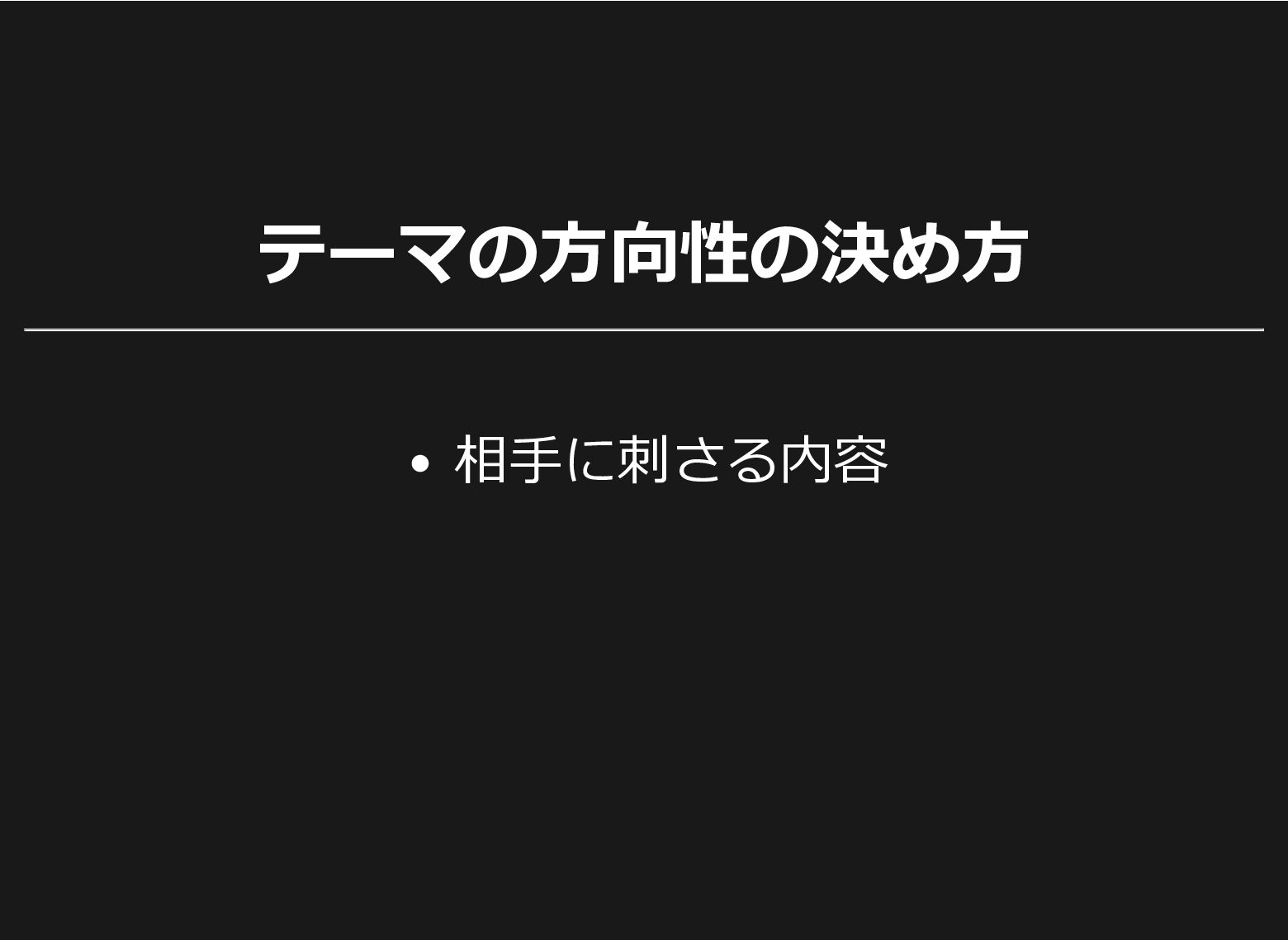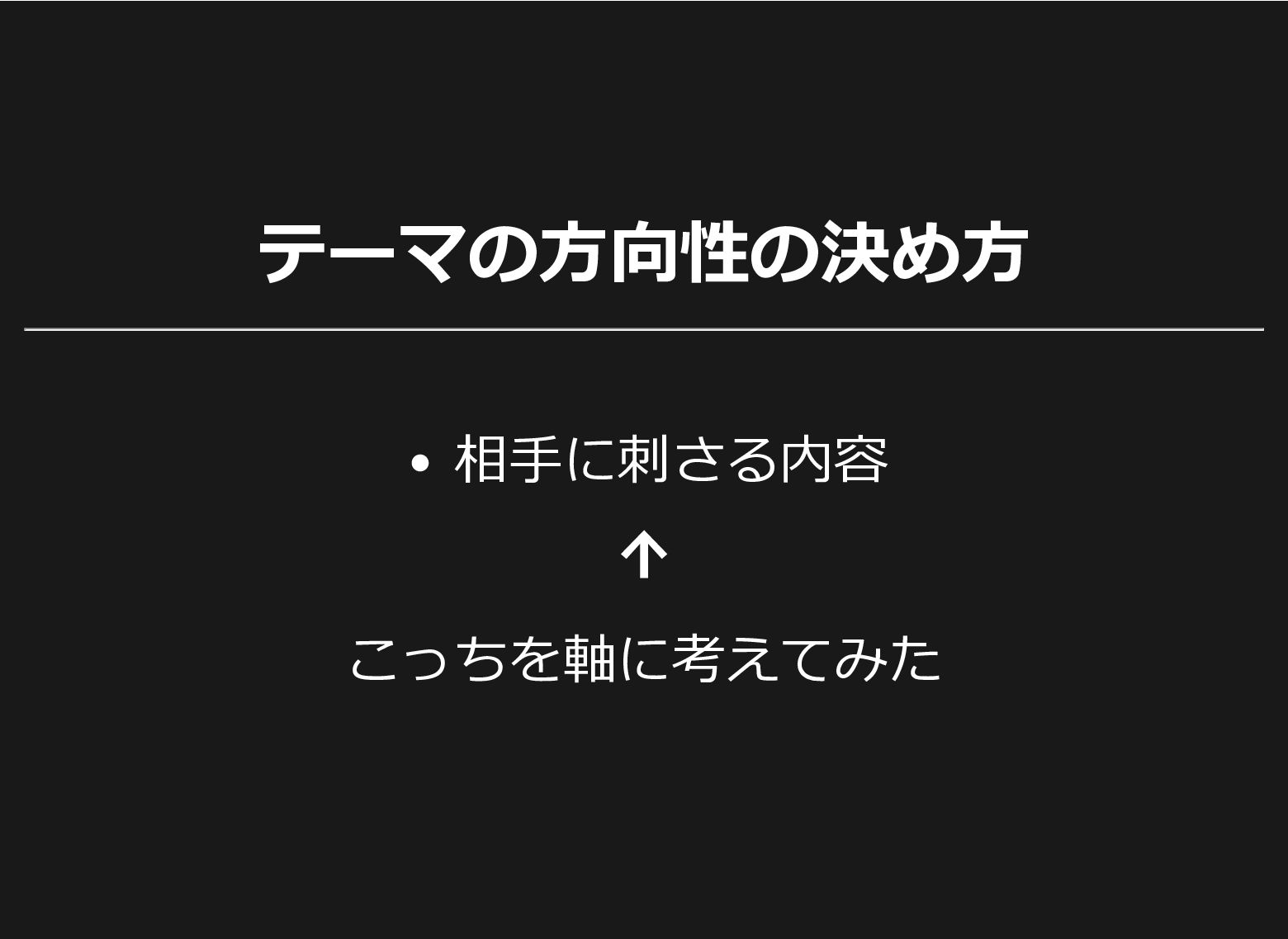 テーマの方向性の決め方 相手に刺さる内容 ↑ こっちを軸に考えてみた