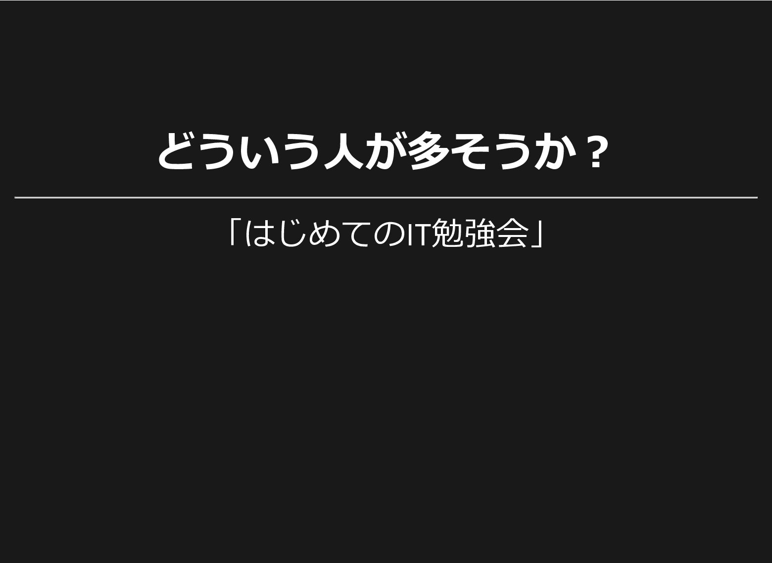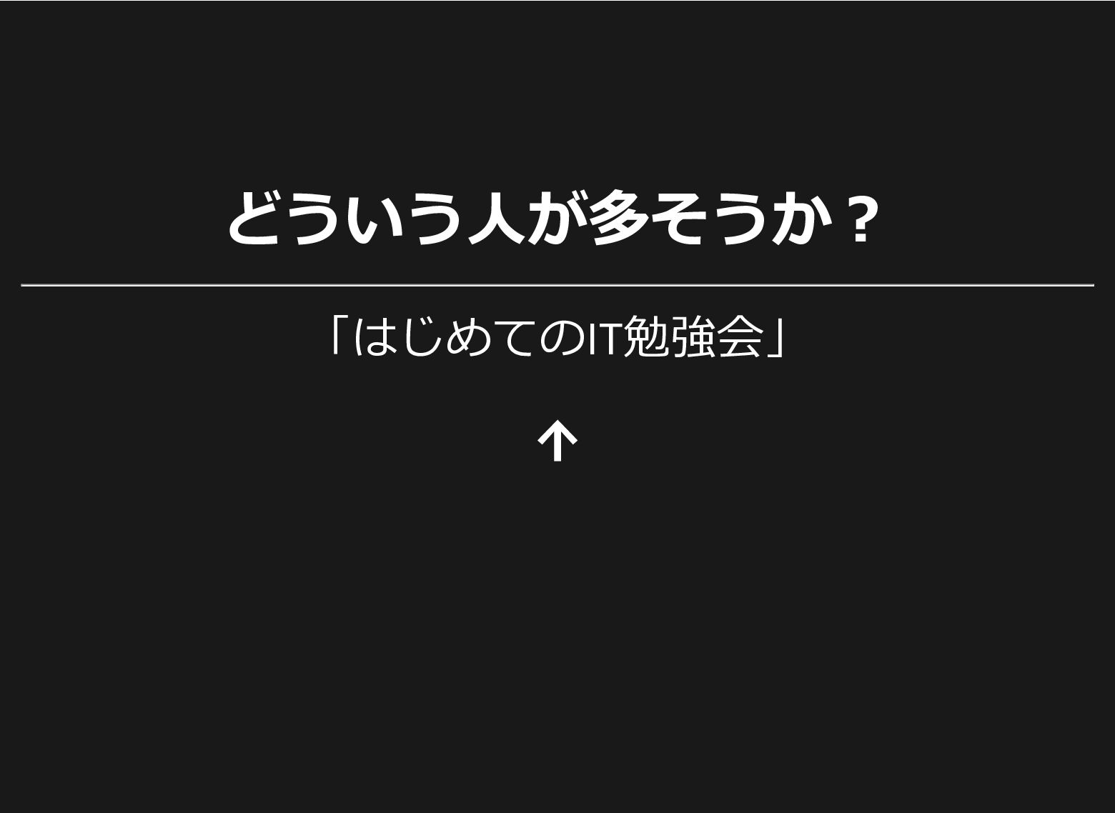 どういう人が多そうか? 「はじめてのIT勉強会」 ↑