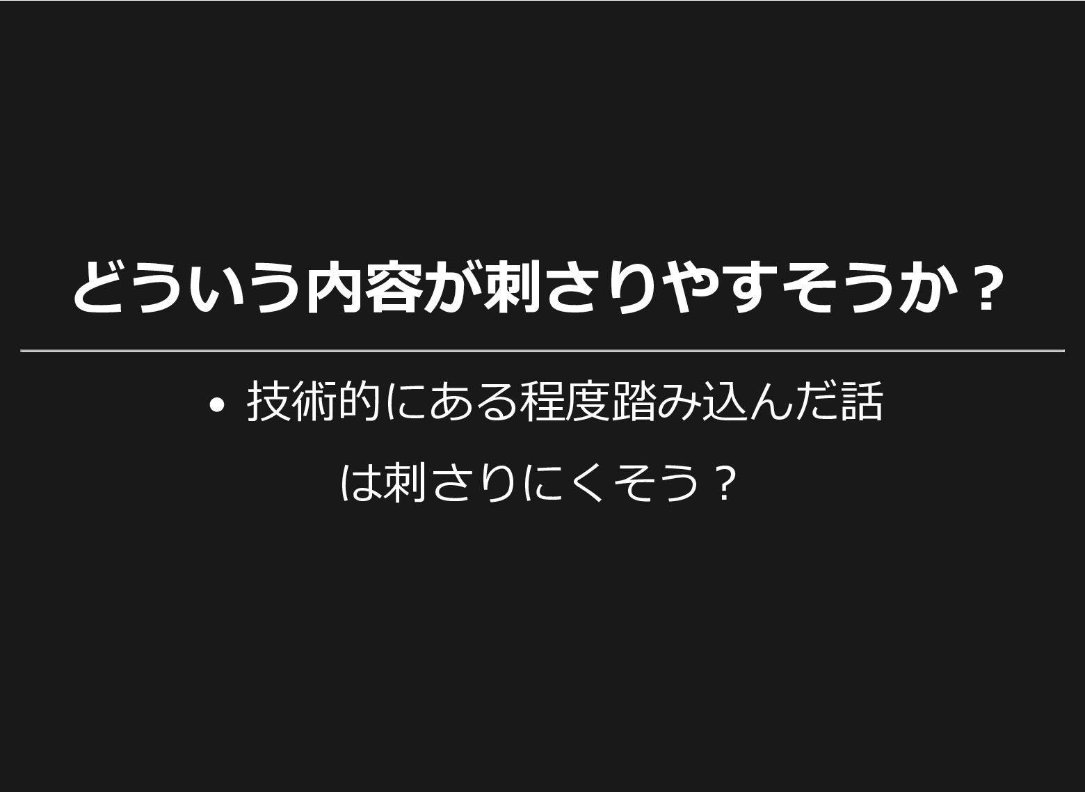どういう内容が刺さりやすそうか? 技術的にある程度踏み込んだ話 は刺さりにくそう?