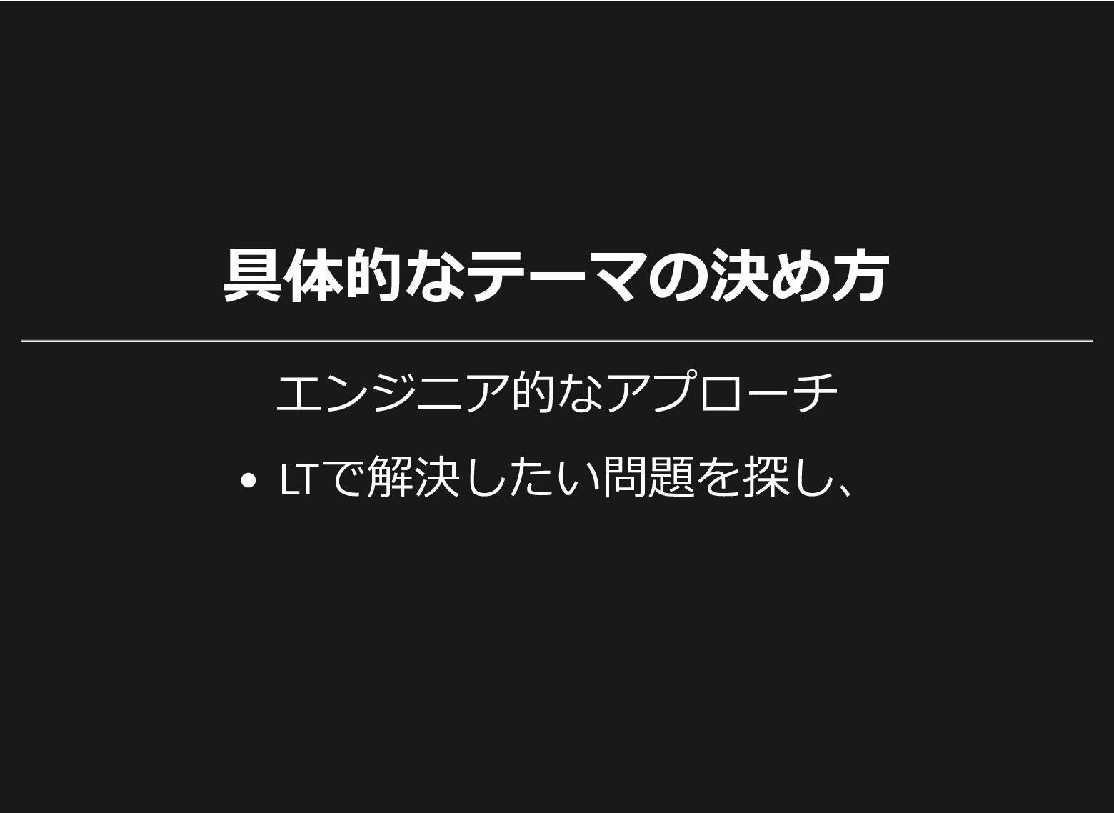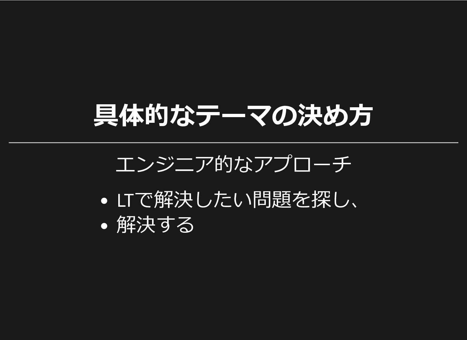 具体的なテーマの決め方 エンジニア的なアプローチ LTで解決したい問題を探し、