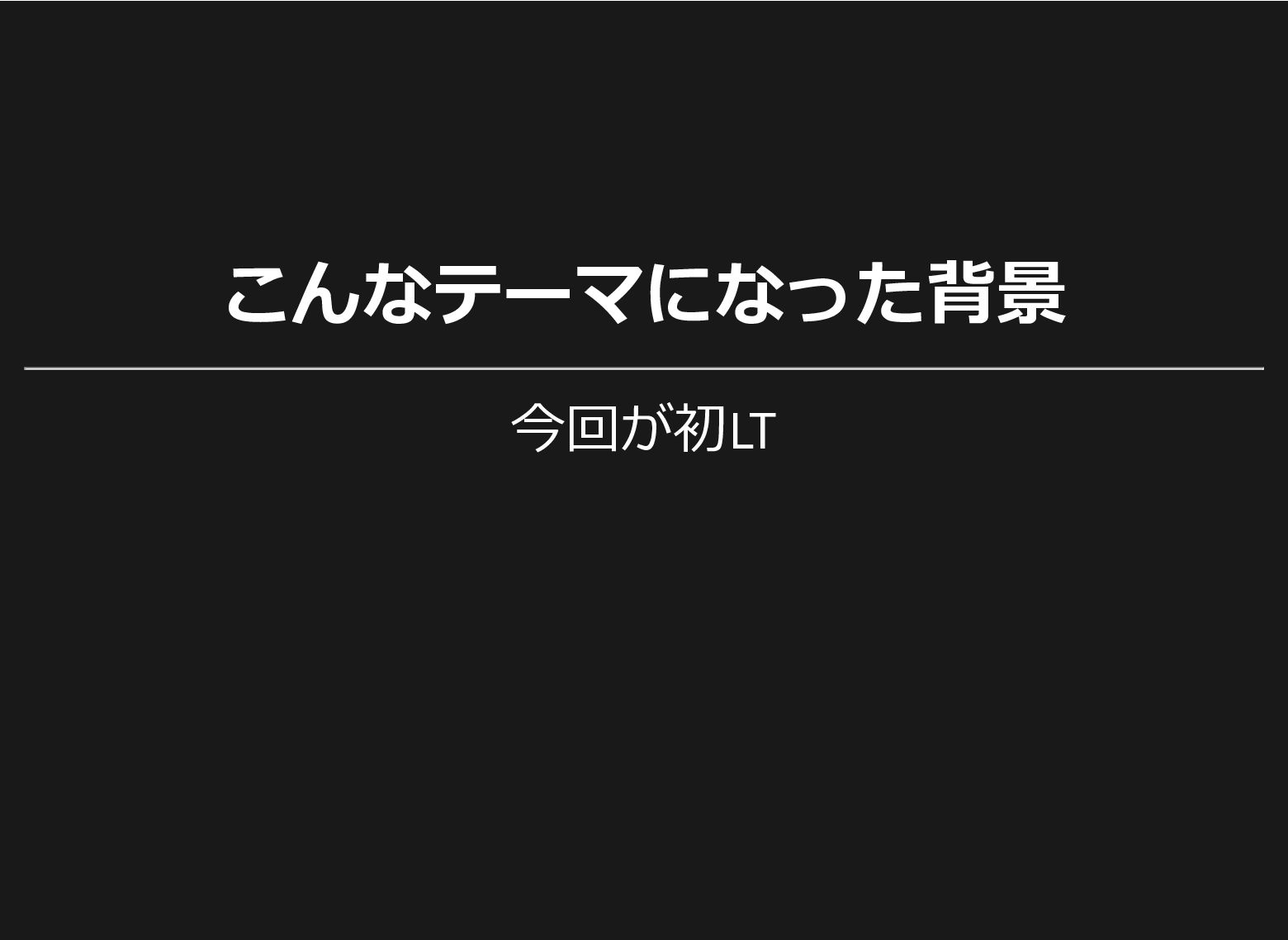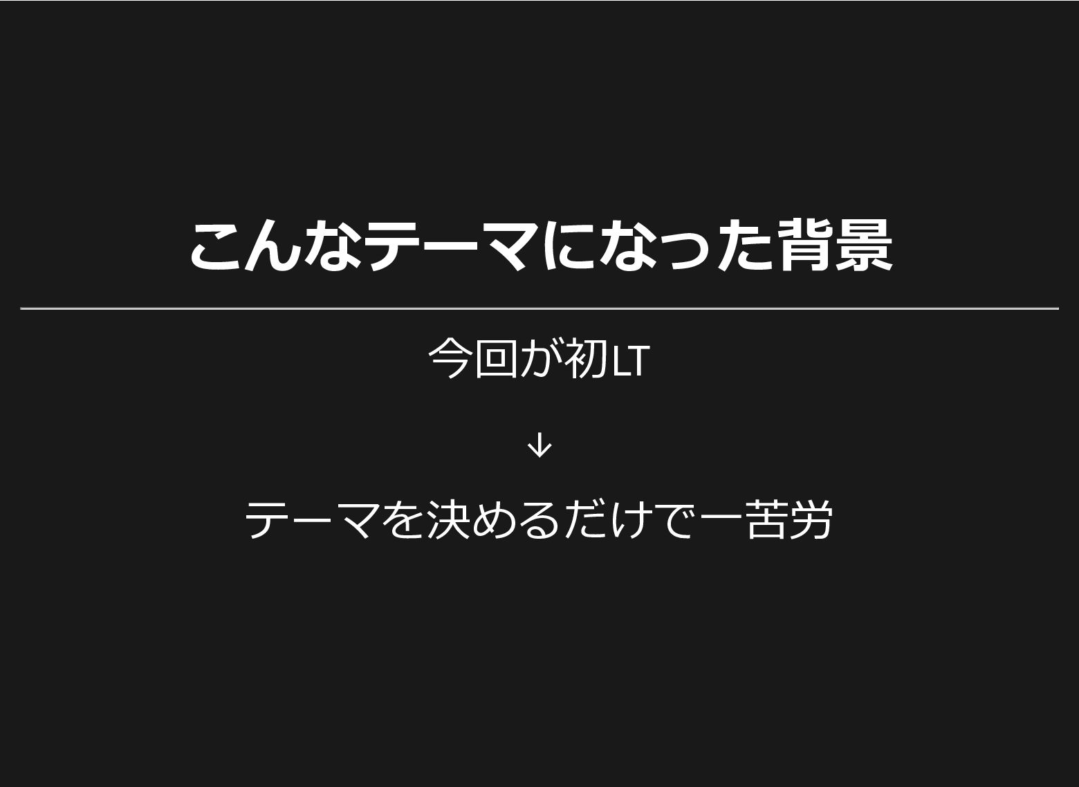 こんなテーマになった背景 今回が初LT ↓ テーマを決めるだけで一苦労