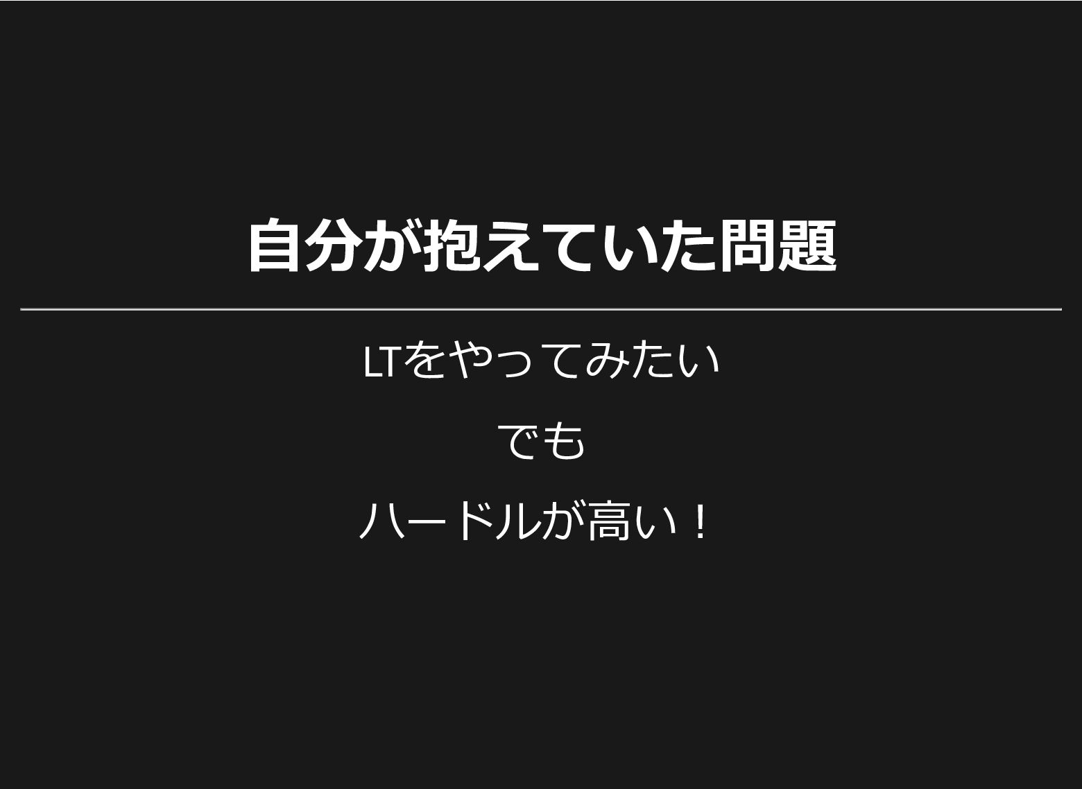 自分が抱えていた問題 LTをやってみたい でも ハードルが高い!