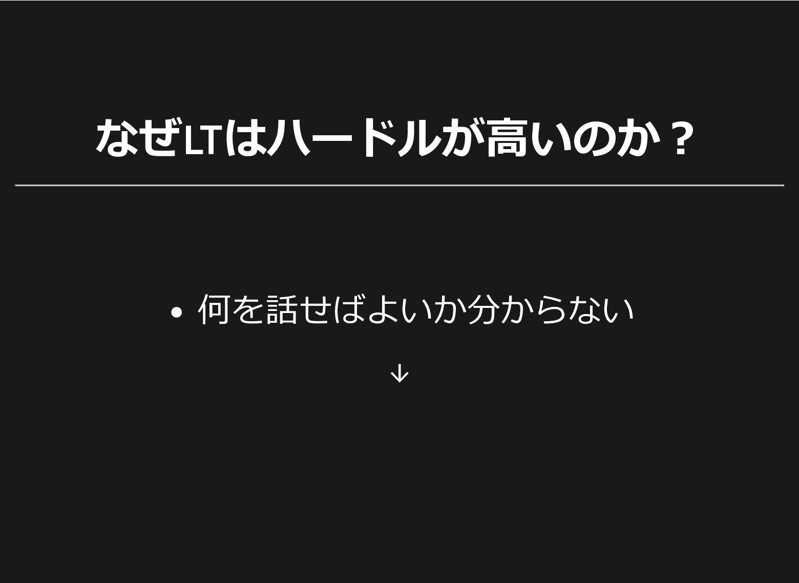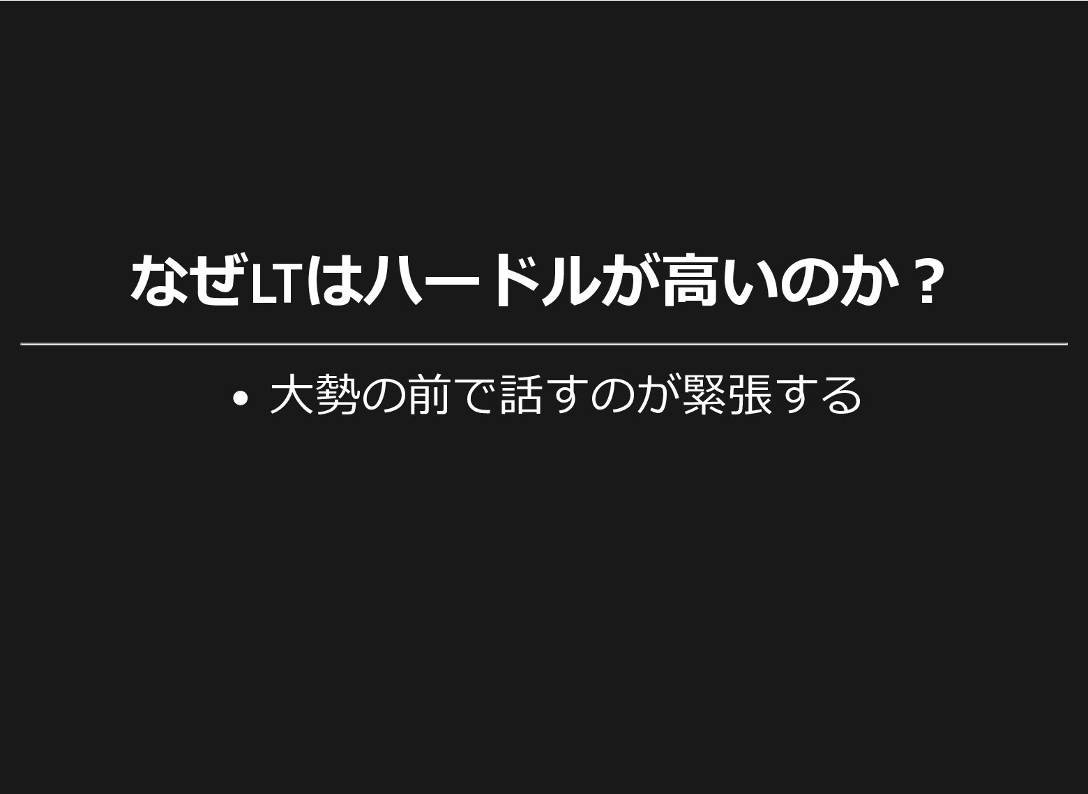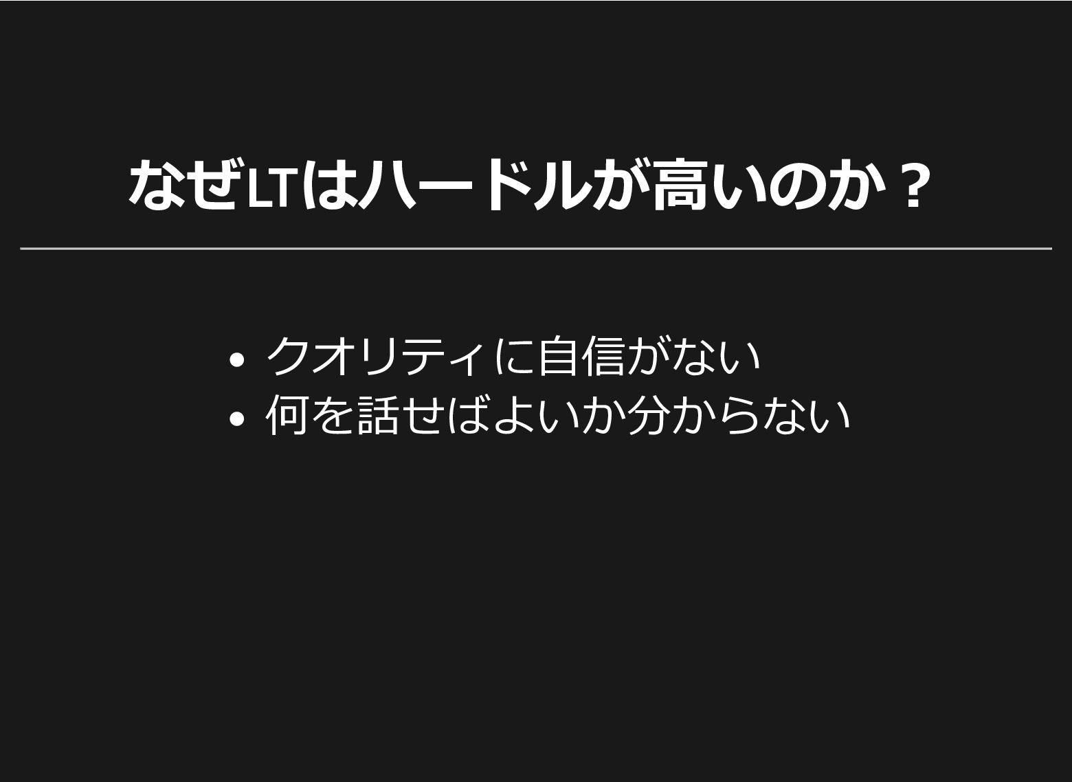 なぜLTはハードルが高いのか? 何を話せばよいか分からない ↓ これは解決できそう