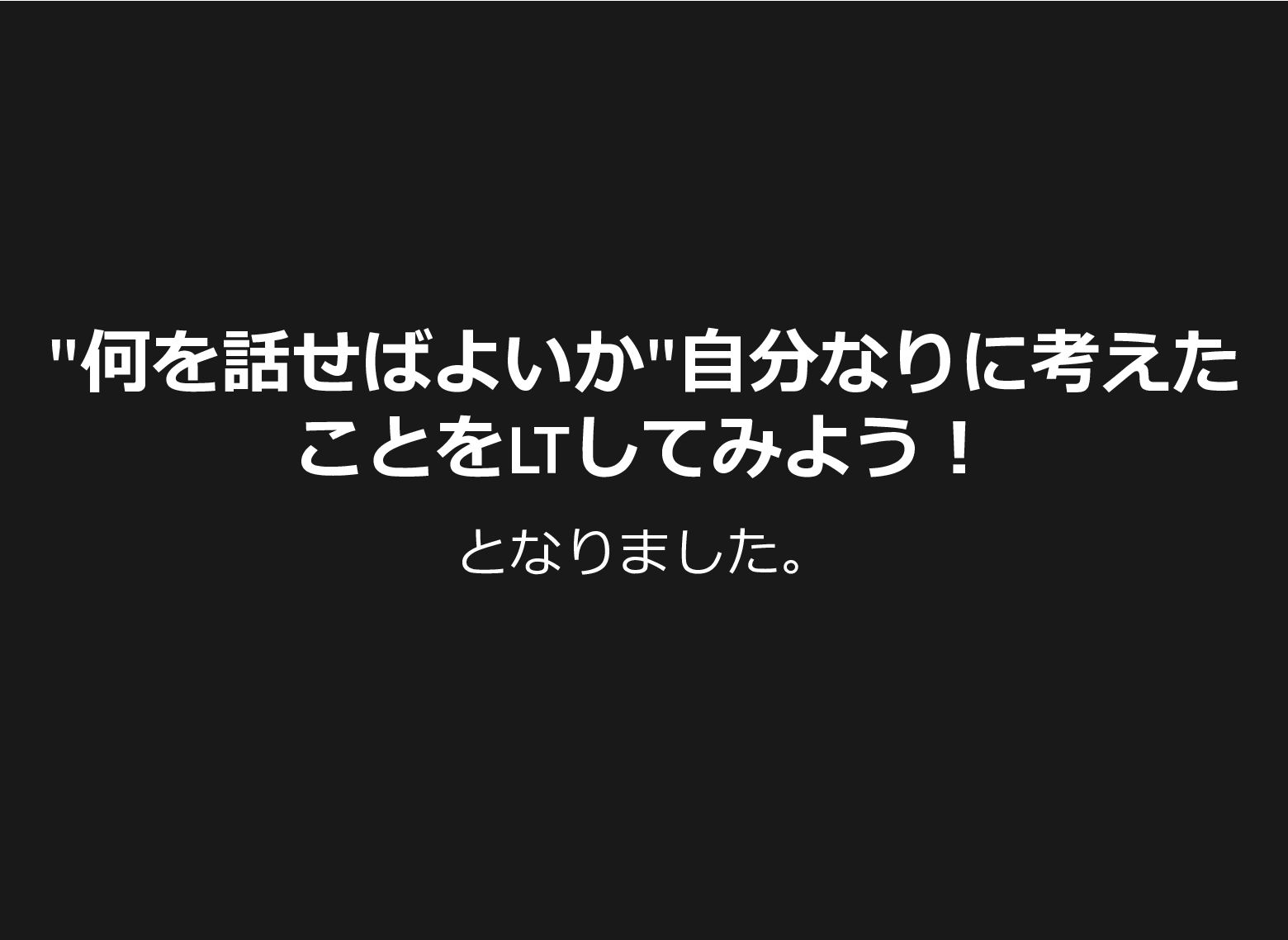 "何を話せばよいか"自分なりに考えた ことをLTしてみよう! となりました。