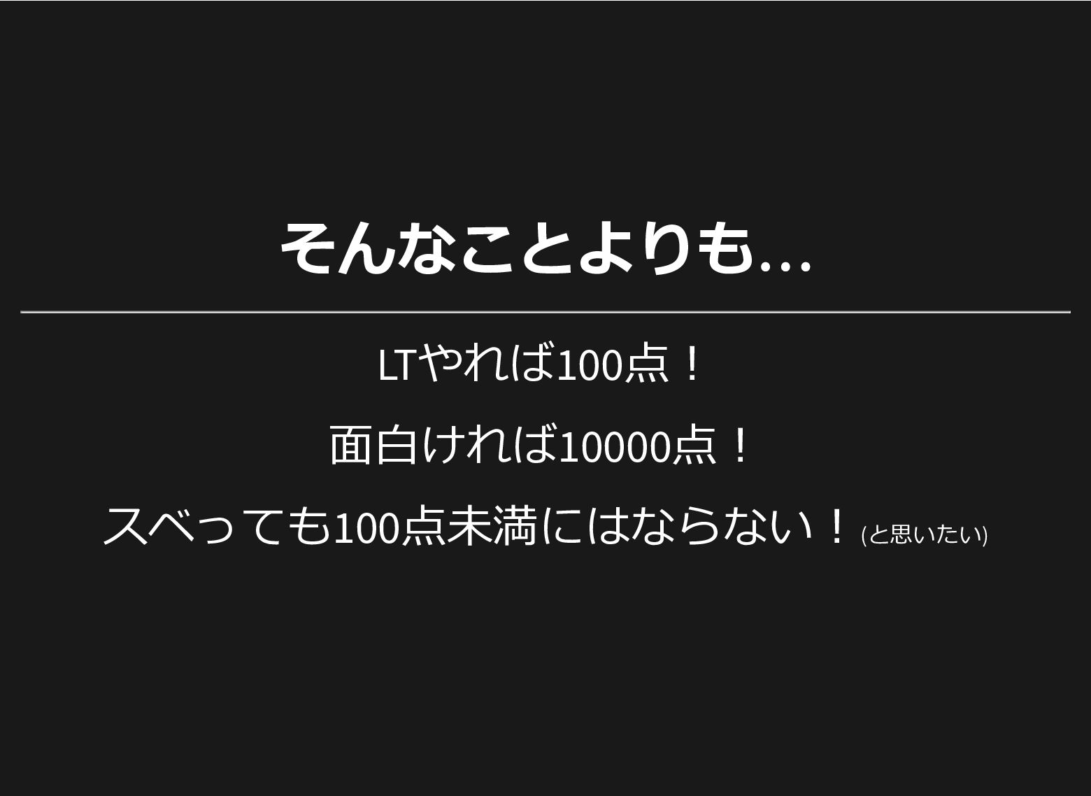 そんなことよりも… LTやれば100点! 面白ければ10000点! スベっても100点未満にはならない!(と思いたい)
