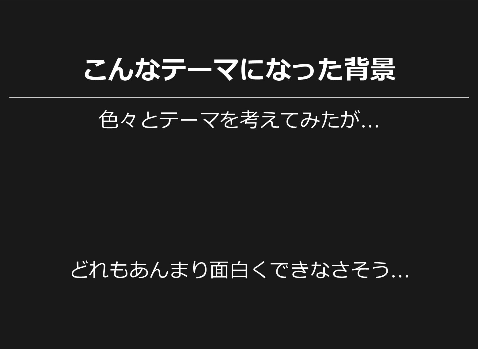 こんなテーマになった背景 色々とテーマを考えてみたが… どれもあんまり面白くできなさそう…