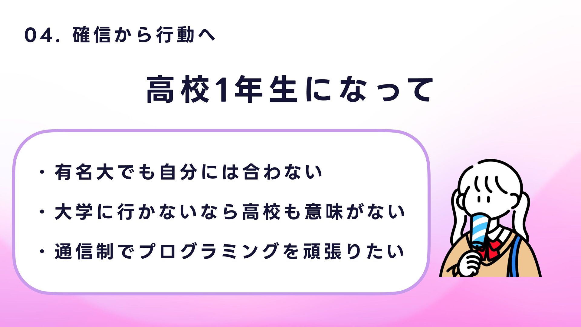 04. 確信から 行 動へ 高 校1年 生 になって ・有名 大
