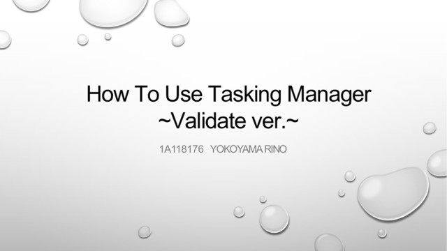 How To Use Tasking Manager ~Validate ver.~ 1A118176 YOKOYAMARINO