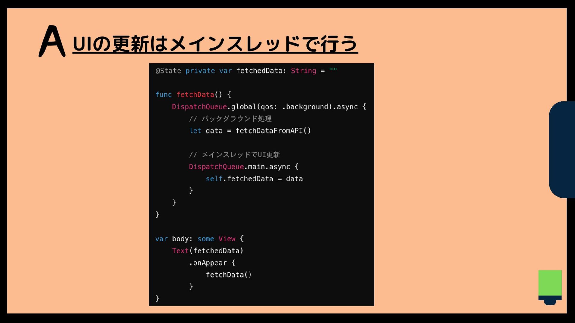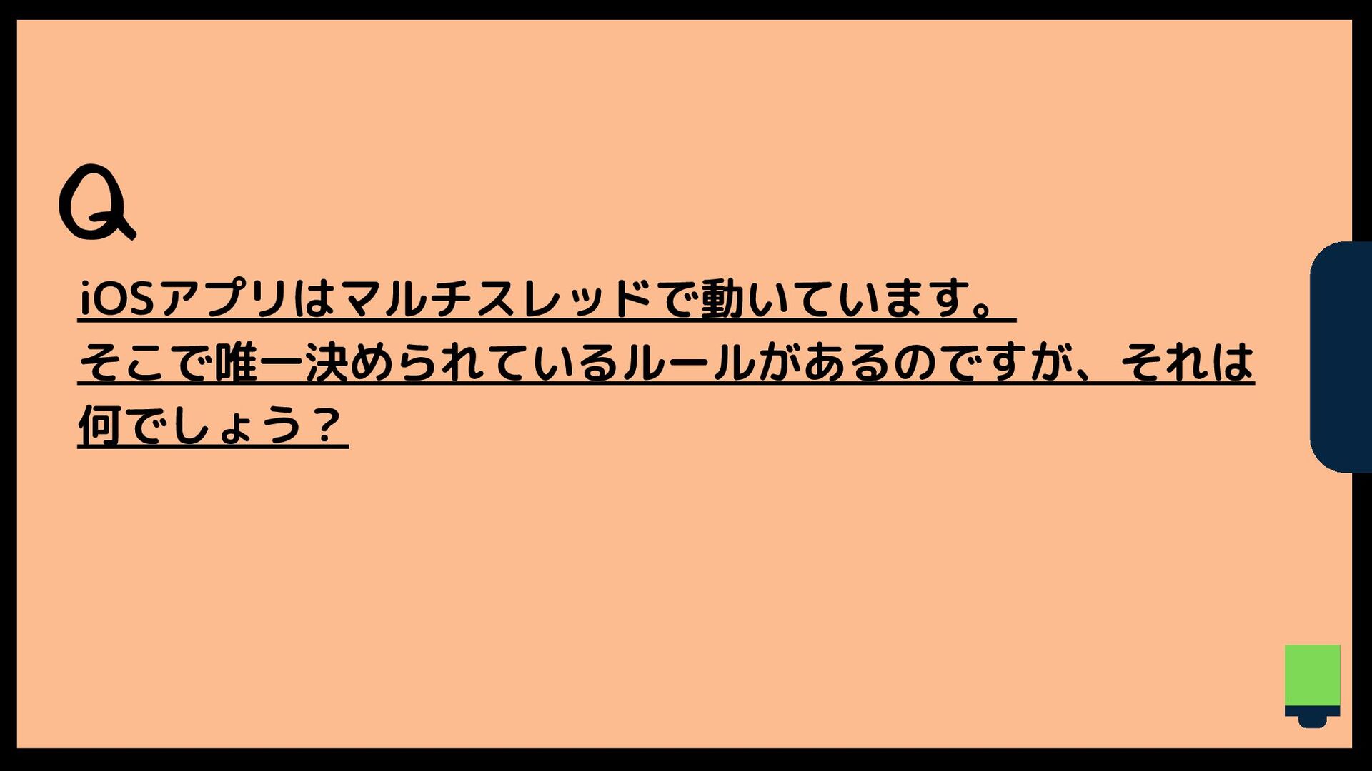 Q iOSアプリはマルチスレッドで動いています。 そこで唯一決められているルールがあるのですが、それは 何でしょう?
