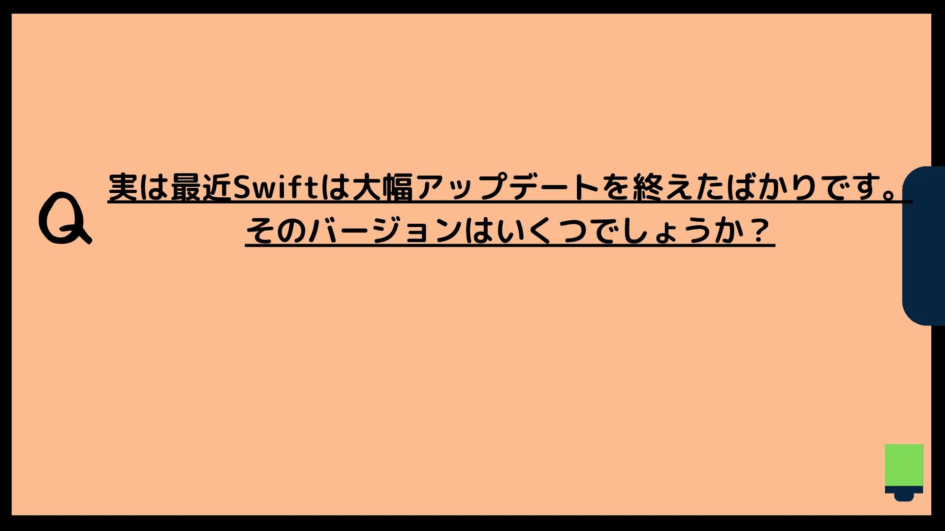 Q 実は最近Swiftは大幅アップデートを終えたばかりです。 そのバージョンはいくつでしょうか?