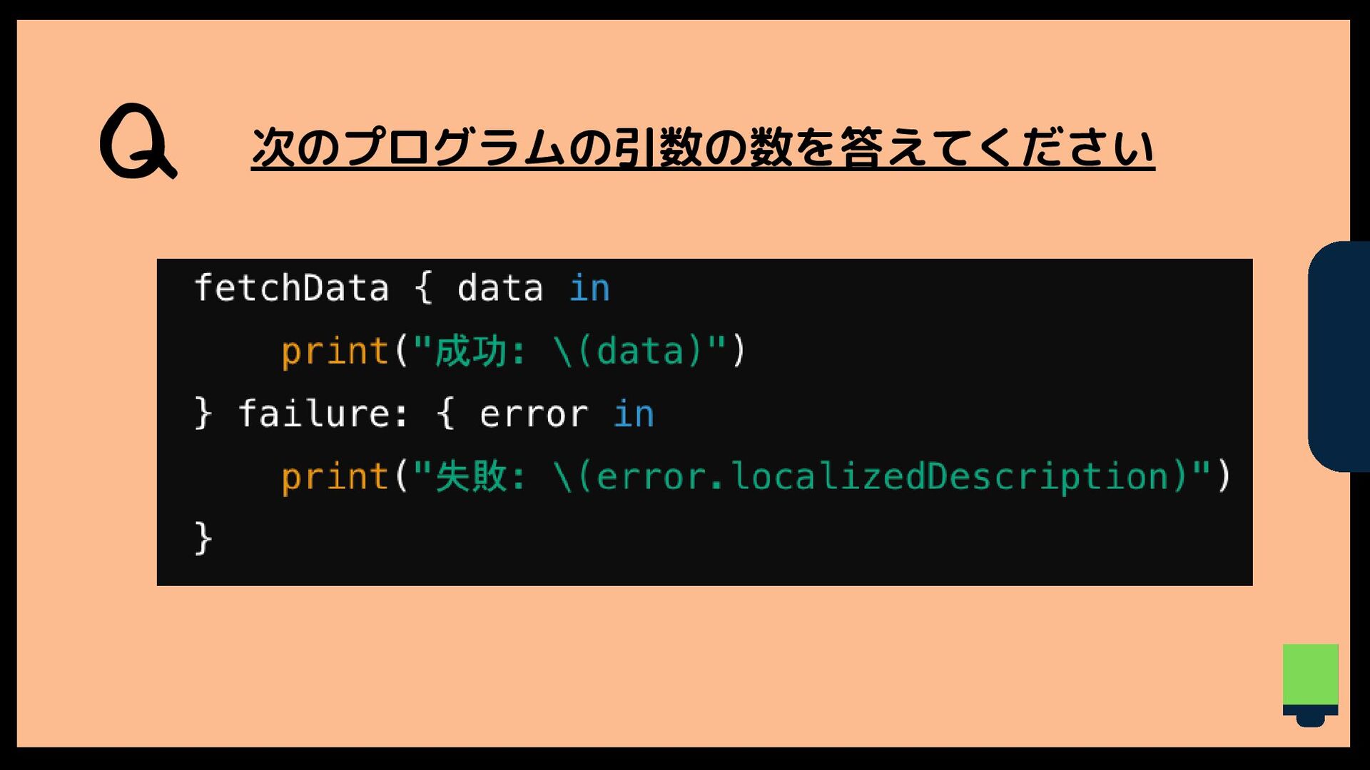 Q 次のプログラムの引数の数を答えてください