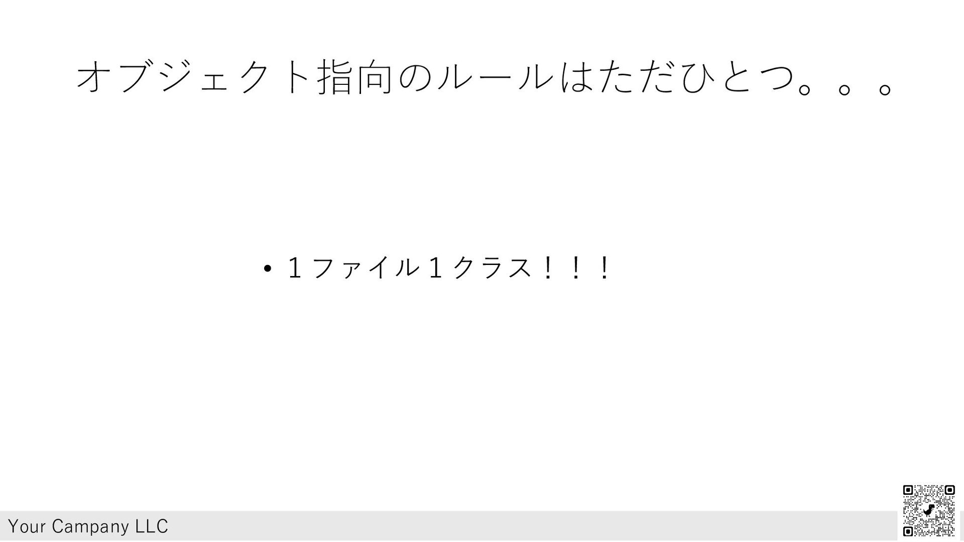 オブジェクト指向のルールはただひとつ。。。 • 1ファイル1クラス!!! Your Campany LLC