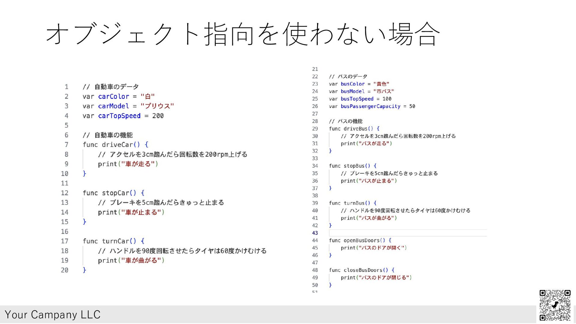 オブジェクト指向を使わない場合 Your Campany LLC