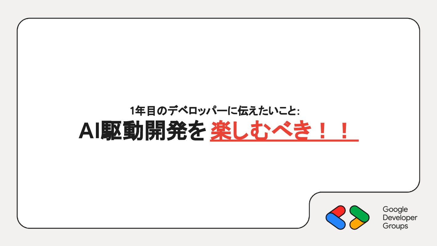 1年目のデベロッパーに伝えたいこと: AI駆動開発を 楽しむべき!!
