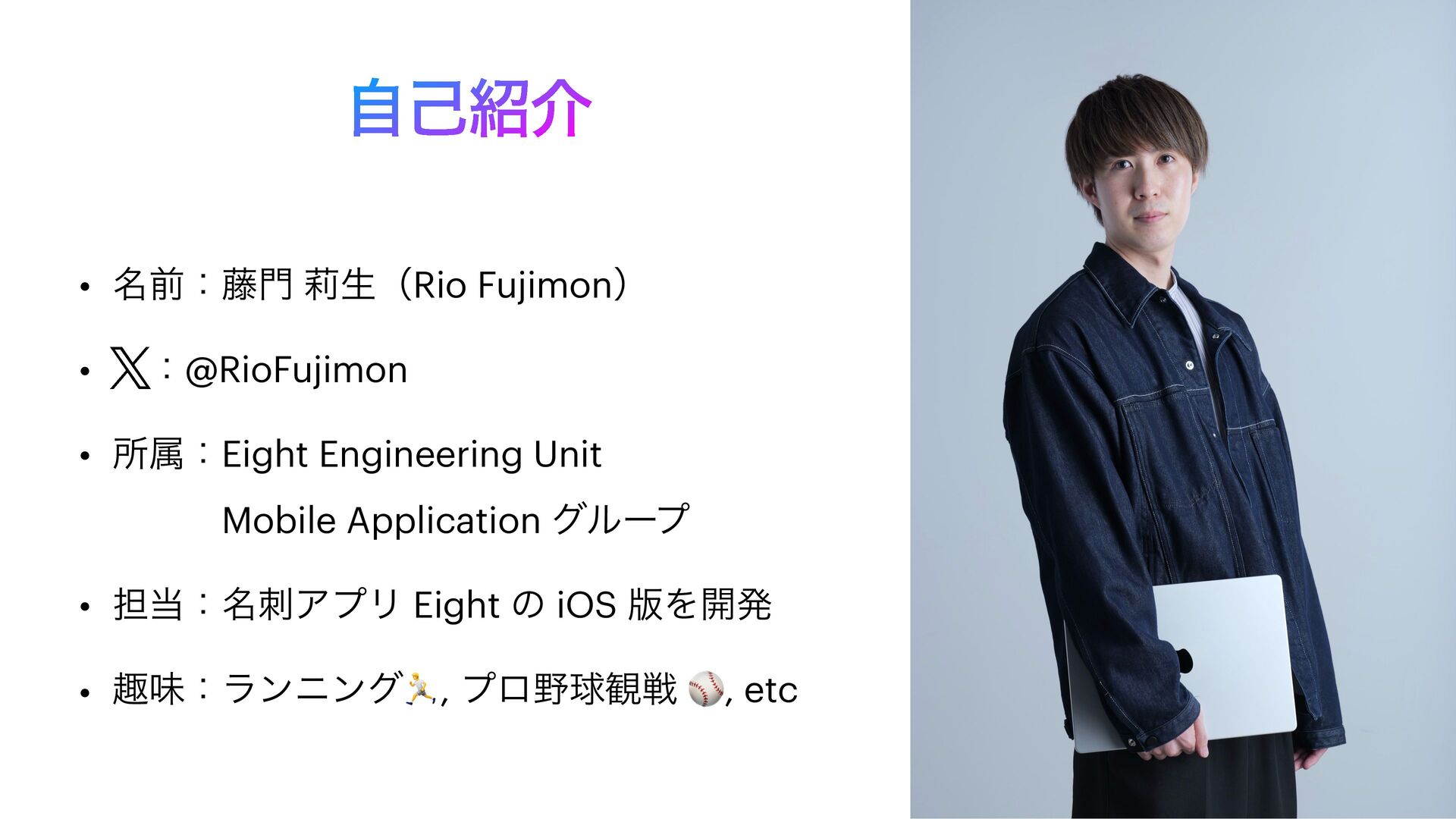 ࣗݾհ • ໊લɿ౻ ᣦੜʢRio Fujimonʣ • ɹɿ@RioFujimon • ॴଐɿEight Engineering