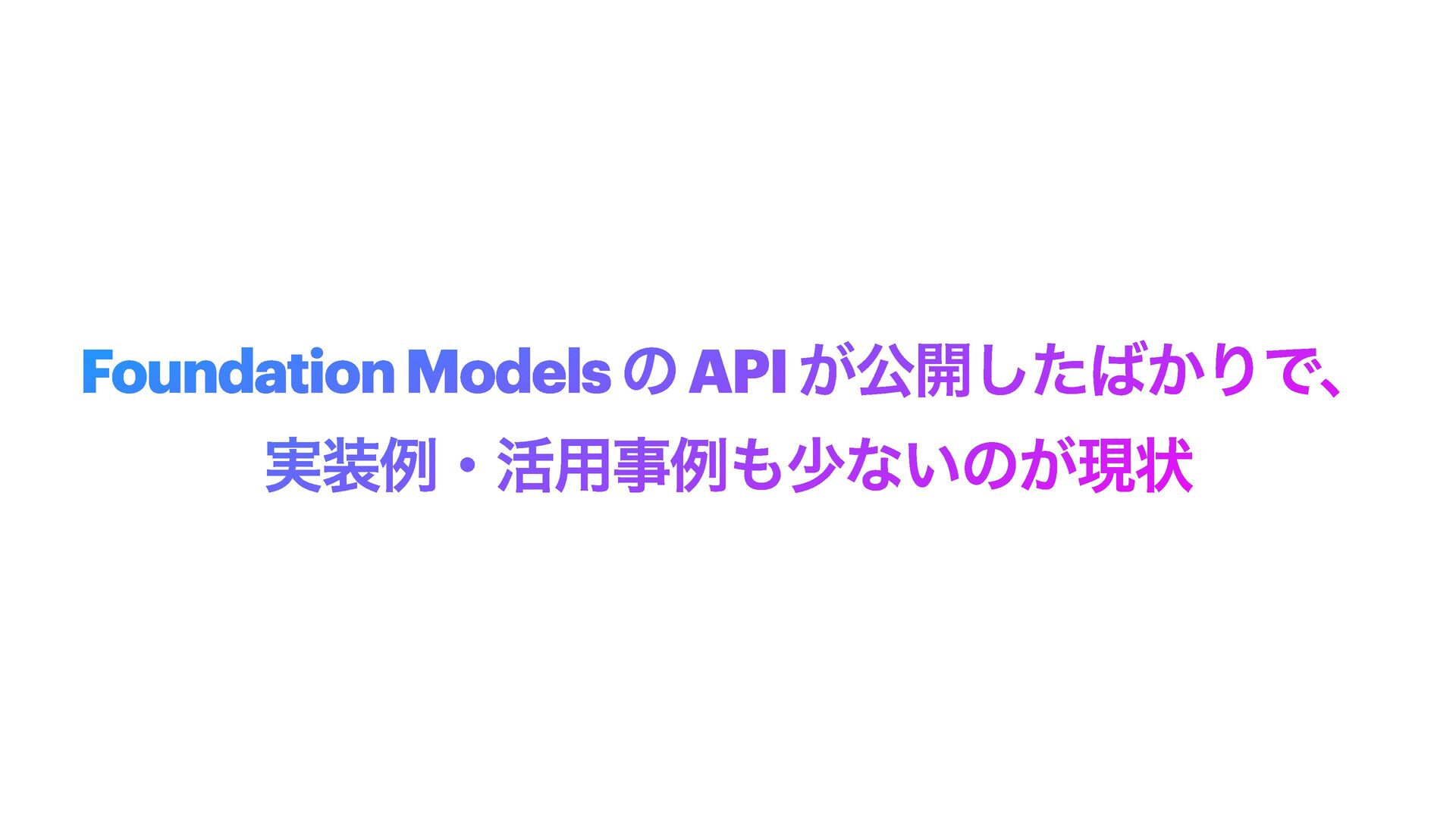 Foundation Models ͷ API ͕ެ։͔ͨ͠ΓͰɺ ࣮ྫɾ׆༻ࣄྫগͳ͍ͷ͕ݱঢ়