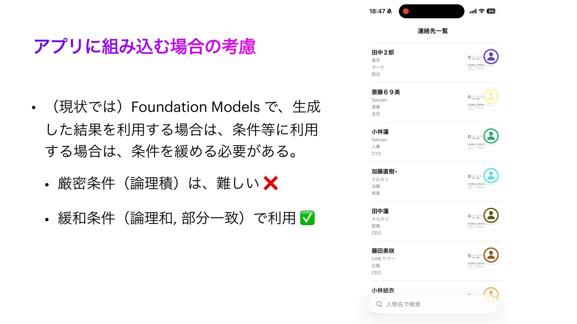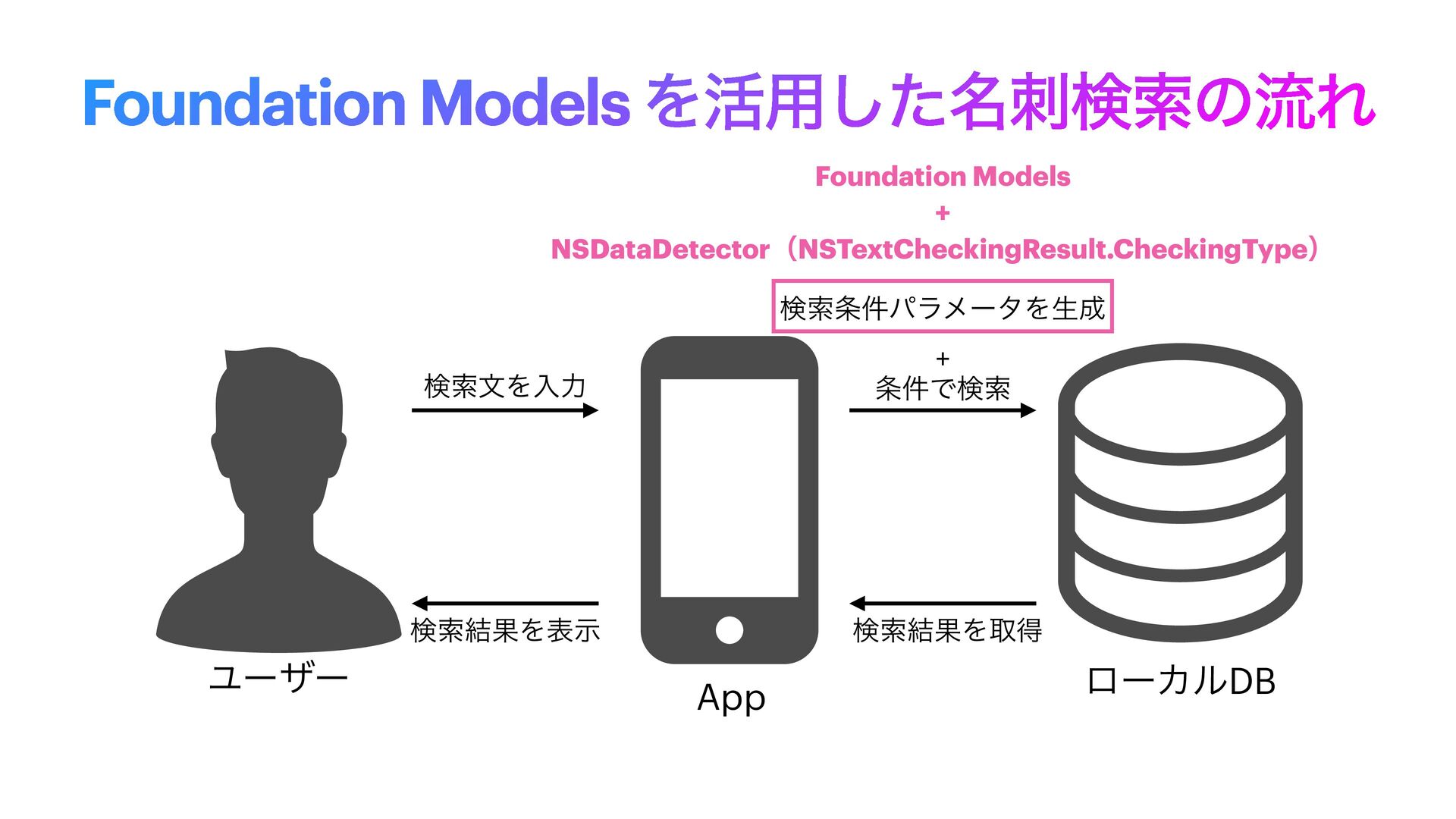 ݅Ͱݕࡧ ݕࡧ݁ՌΛऔಘ Foundation Models + NSDataDetectorʢNSTextCheckingResult.CheckingTypeʣ