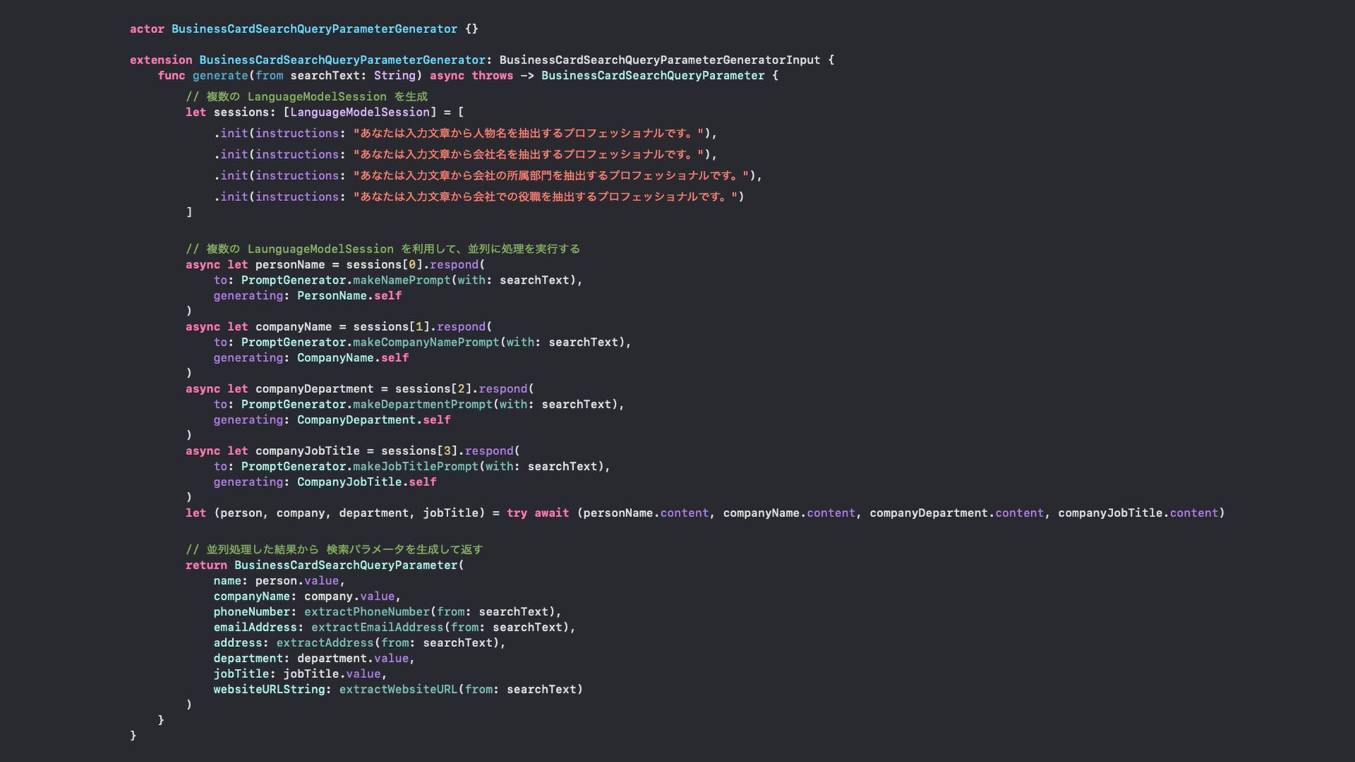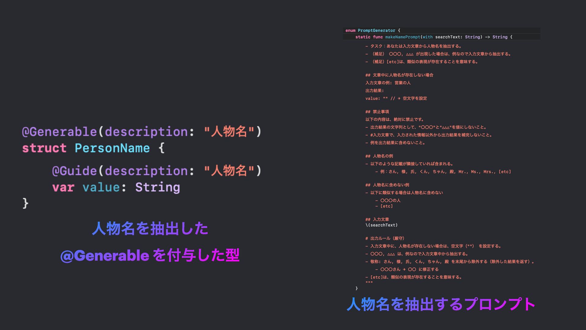 ৬໊Λநग़ͨ͠ @Generable Λ༩ͨ͠ܕ ৬໊Λநग़͢Δϓϩϯϓτ