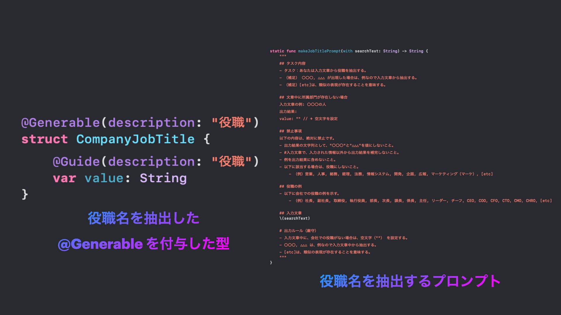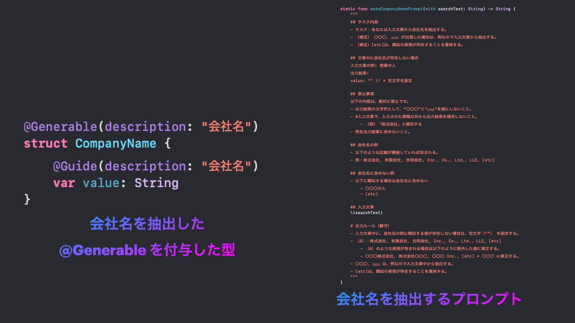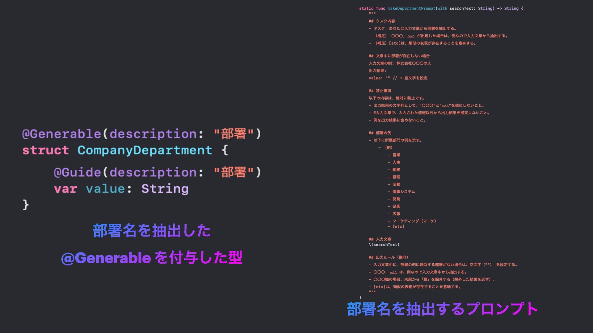 ෦ॺ໊Λநग़ͨ͠ @Generable Λ༩ͨ͠ܕ ෦ॺ໊Λநग़͢Δϓϩϯϓτ