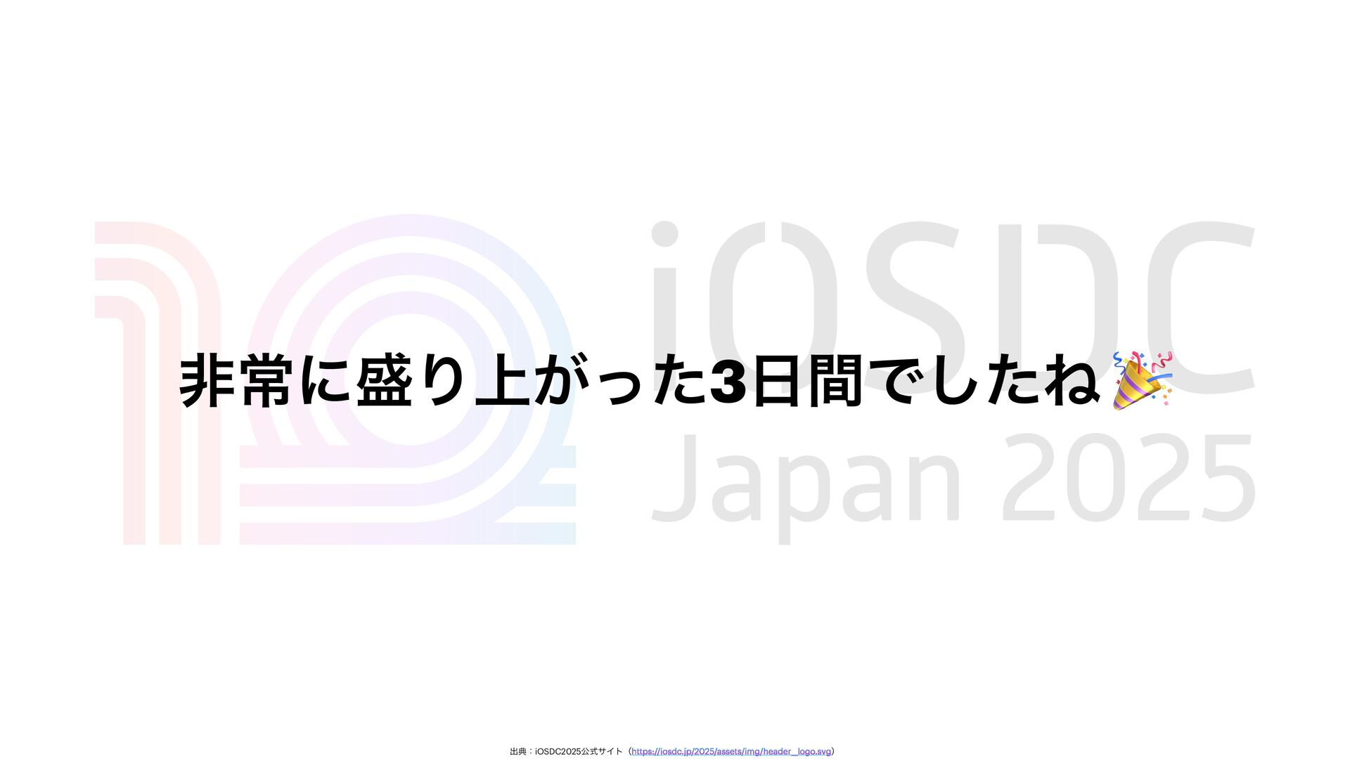 ग़యɿiOSDC2025ެࣜαΠτʢhttps://iosdc.jp/2025/assets/img/header__logo.svgʣ ඇৗʹΓ্͕ͬͨ3ؒͰͨ͠Ͷ 🎉