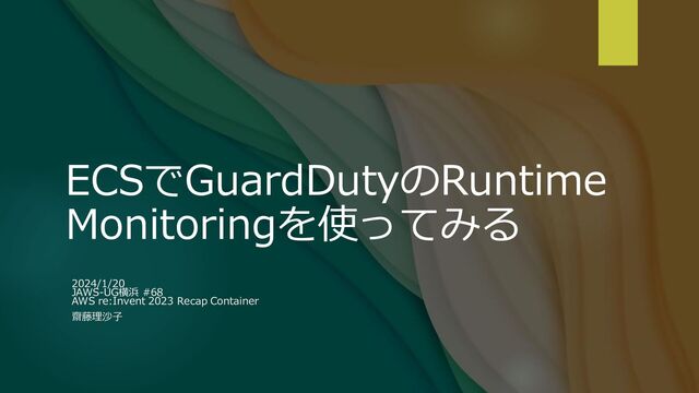 ECSでGuardDutyのRuntime Monitoringを使ってみる 2024/1/20 JAWS-UG横浜 #68 AWS re:Invent 2023 Recap Container
