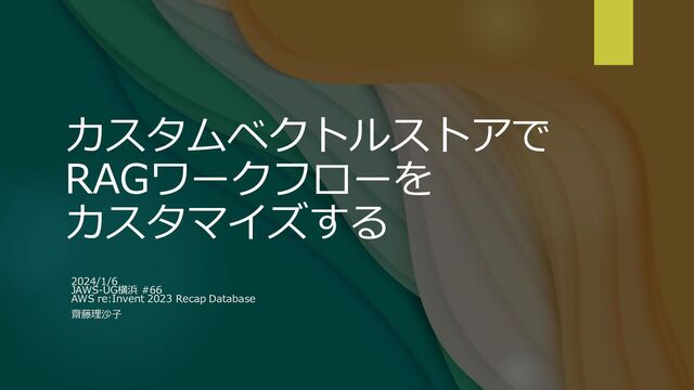 カスタムベクトルストアで RAGワークフローを カスタマイズする 2024/1/6 JAWS-UG横浜 #66 AWS re:Invent 2023 Recap