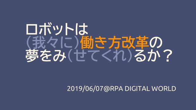 ロボットは (我々に)働き方改革の 夢をみ(せてくれ)るか? 2019/06/07@RPA DIGITAL WORLD