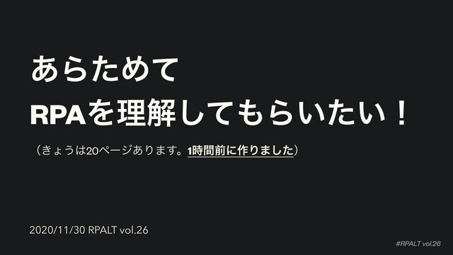 #RPALT vol.26 ͋ΒͨΊͯ RPAΛཧղͯ͠Β͍͍ͨʂ 2020/11/30 RPALT vol.26 ʢ͖ΐ͏20ϖʔδ͋Γ·͢ɻ1࣌ؒલʹ࡞Γ·ͨ͠ʣ