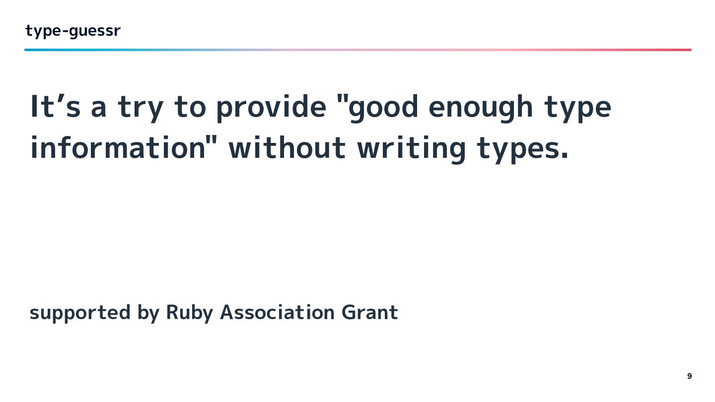 writing types. supported by Ruby Association Grant type-guessr 9