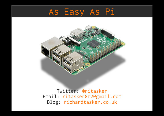 The Raspberry Pi is a small inexpensive computer, initially designed to teach children programming. It has become the core component in many hobby projects and with subsequent releases of the credit card size device has seen it move into industry. In this session Richard Tasker will introduce you to the Raspberry Pi, and show you how to get up and running with the Raspberry Pi. Richard will show you how to develop and deploy your code to the Pi. Introduce you to electronics and show you how to build applications that sense the environment. In the final section he will discuss how to go about architecting larger sensor networks, and how to interact with Azures IoT services.