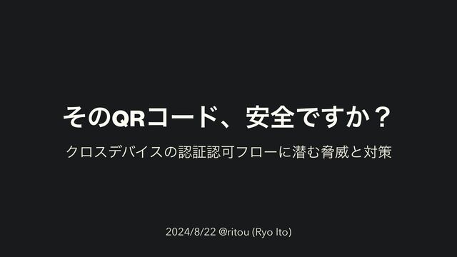 ͦͷQRίʔυɺ҆શͰ͔͢ʁ ΫϩεσόΠεͷೝূೝՄϑϩʔʹજΉڴҖͱରࡦ 2024/8/22 @ritou (Ryo Ito)